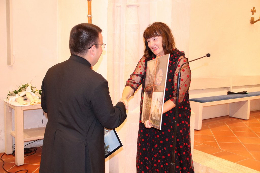 Na kraju koncerta Snježana Rucner darovala je dvije umjetničke fotografije na kojima su prikazi voćinske crkve nekada i danas,