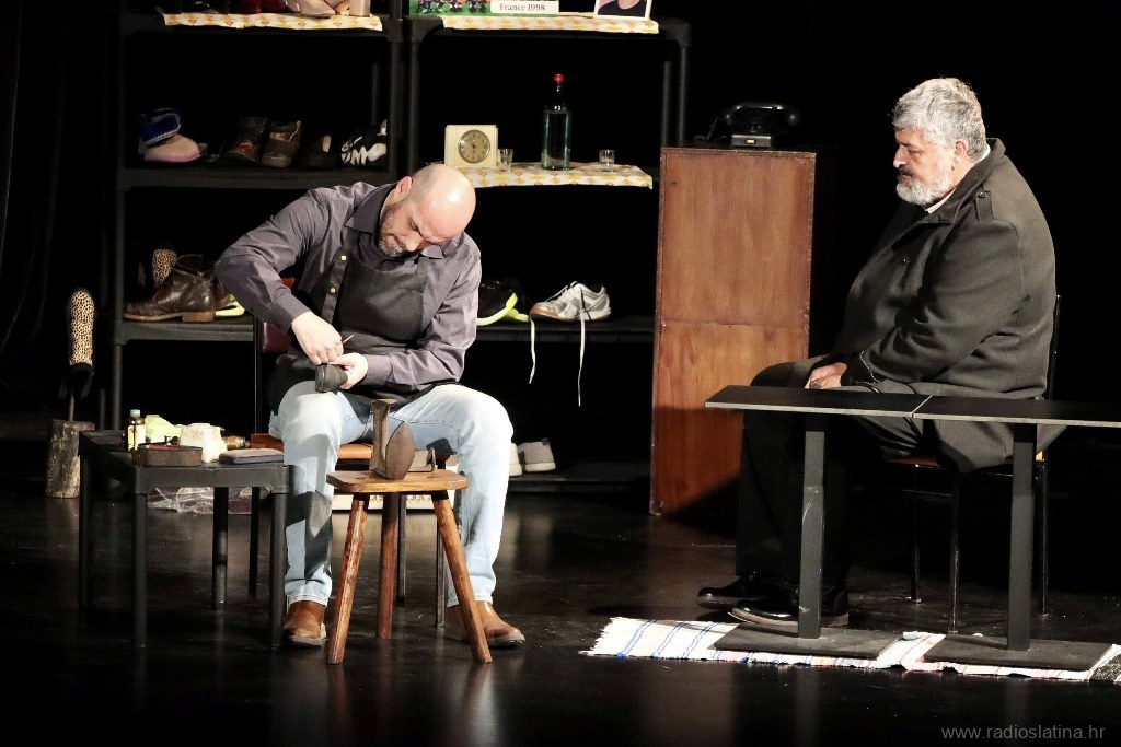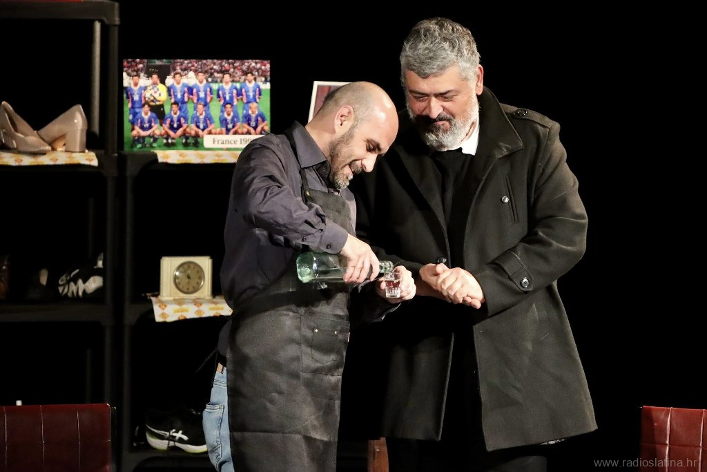 U predstavi nastupaju Ivan Baltić (Postolar), Ivan Santner (mladi postolar), Zoran Kordić (komšija), Ena Perković (Dragana), Saša Matijević (Dušan), Denis Ostrošić (Bare) i Oliver Jukić (Miloš).
