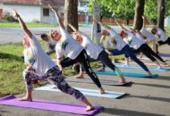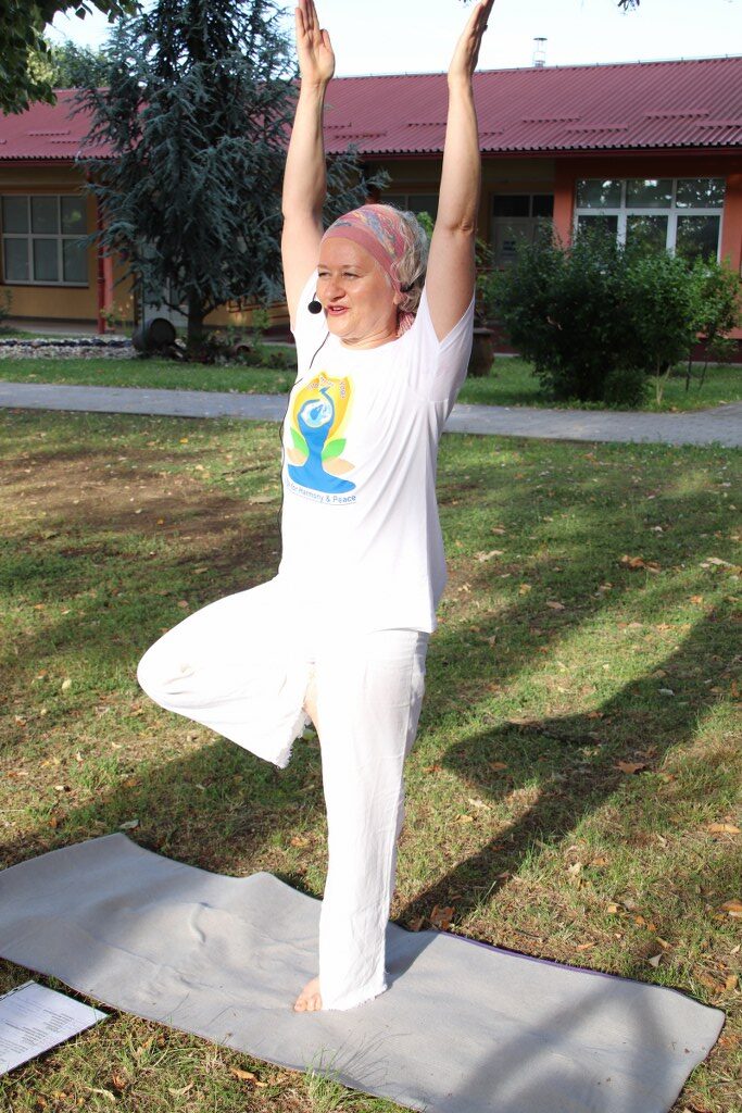 Vježbe koje su u cijelom svijetu iste, a koje je propisao Indijski joga savez, vodila je predsjednica Udruge AUM Svjetlana Dupan, certificirana trenerica joge s 500 sati obuke u Indiji i međunarodnom licencom.