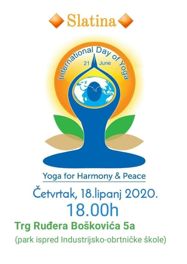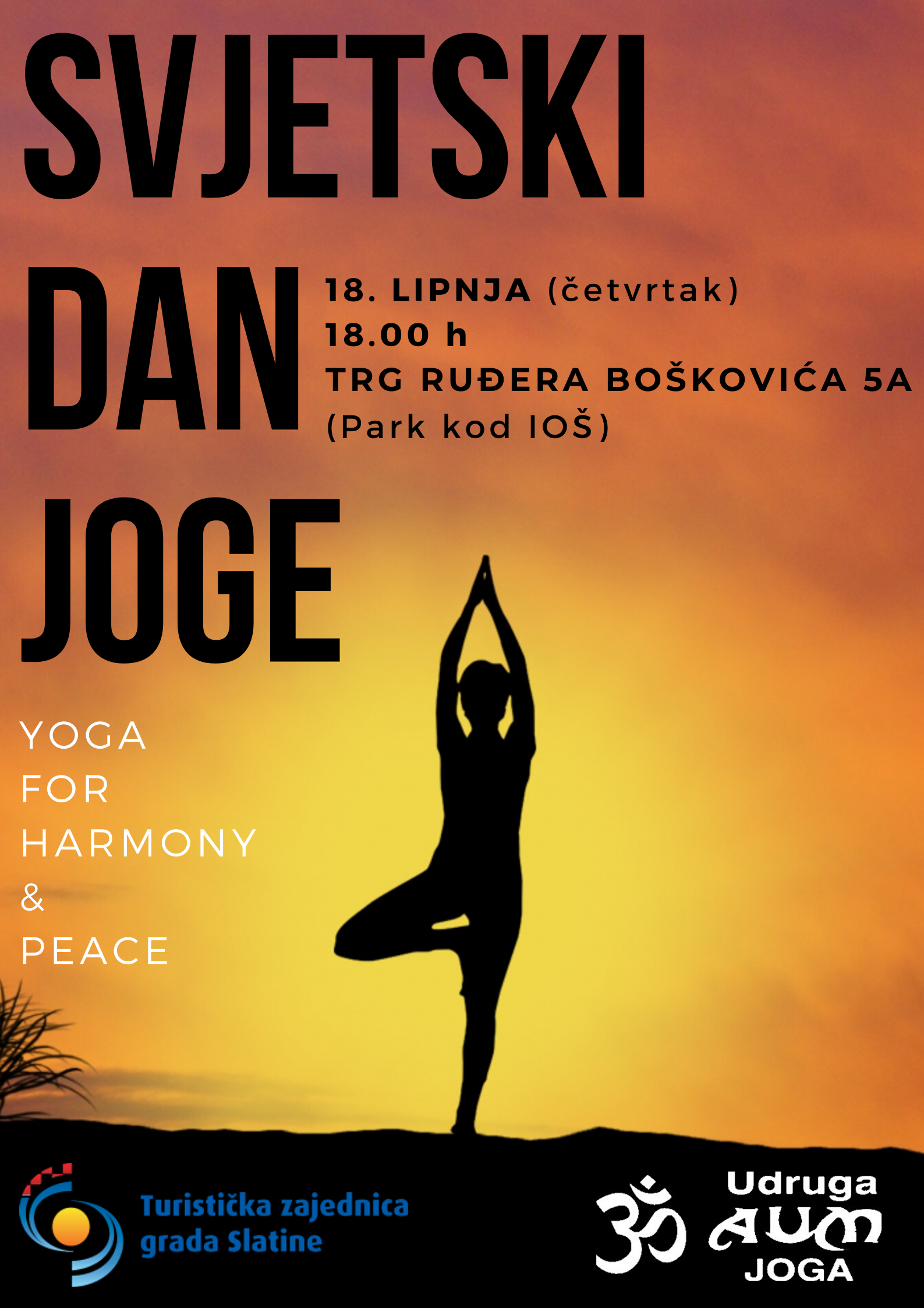 Program povodom Međunarodnog dana joge, koji je u Slatini obilježen po treći puta, provodi Udruga AUM pod pokroviteljstvom Indijske ambasade u Zagrebu, u suradnji s Gradom Slatinom i Turističkom zajednicom Grada Slatine.