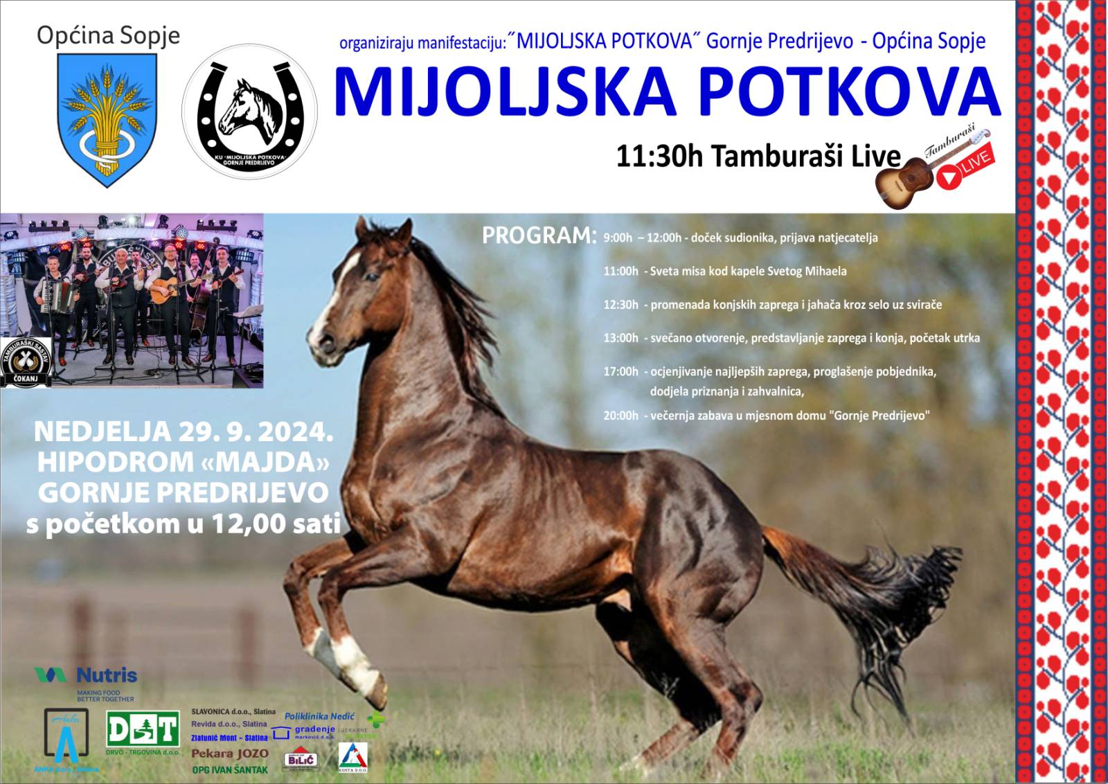 Konjička udruga „MIJOLJSKA POTKOVA“ Gornje Predrijevo i Općina Sopje ovoga vikenda pripremaju tradicionalnu manifestaciju MIJOLJSKA POTKOVA 2024.