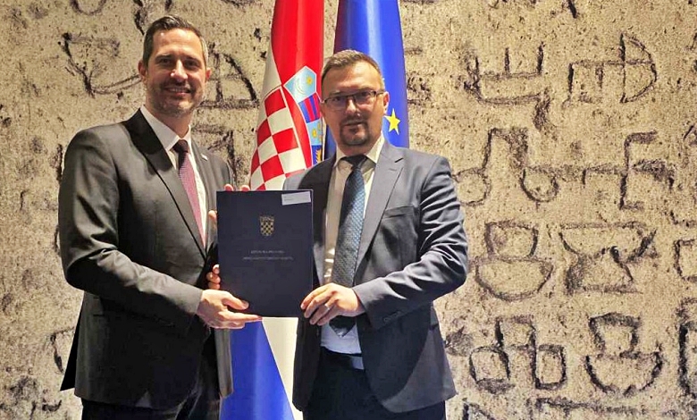 Ministar Glavina uručio načelniku Berislavu Androšu ugovor za sufinanciranje projekta ”Izgradnja montažne tribine i opremanje igrališta u Novoj Šarovki”
