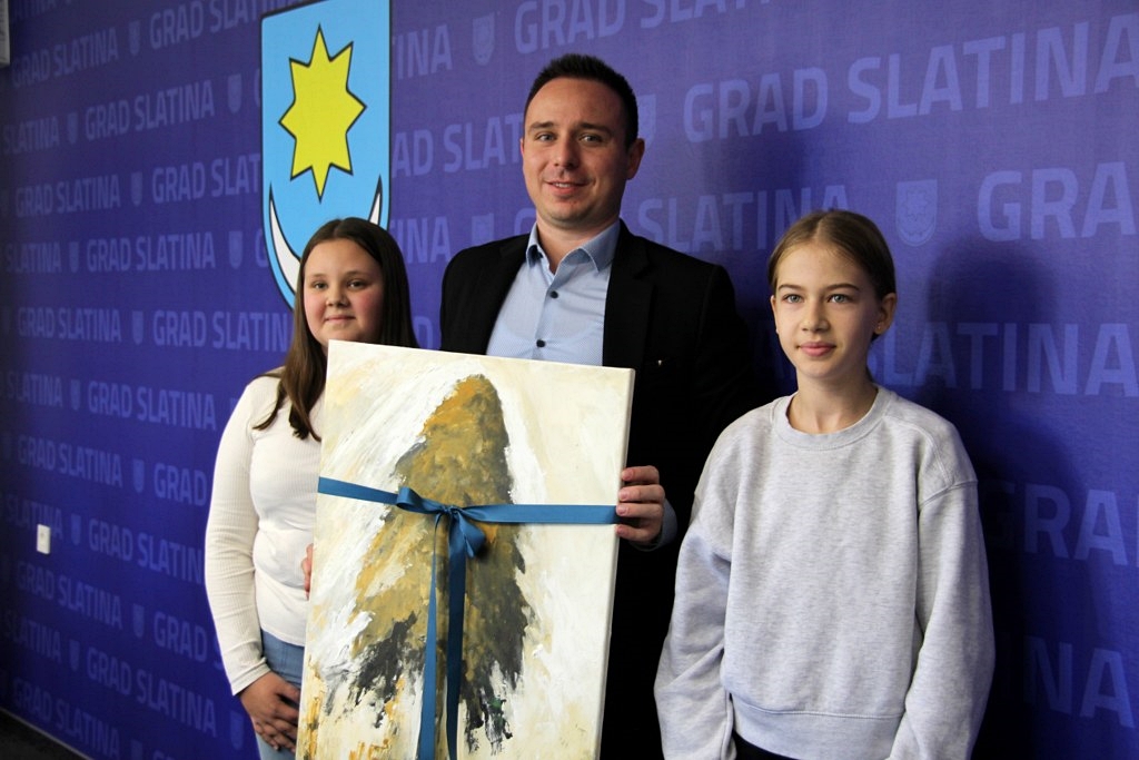 Na kraju druženja, mali gosti su gradonačelniku uručili sliku slatinske Sekvoje, djelo profesora likovne kulture Josipa Jelenčića, kao simbol grada i uspomenu na susret.