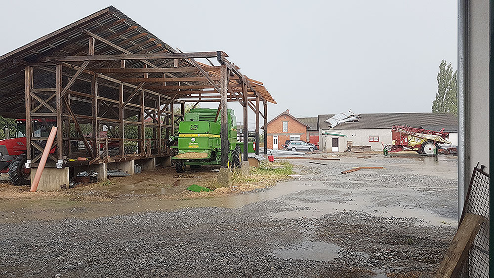 – Vjetar nam je podigao krov s nadstrešnice za kombajn, bacio ga na prvi gospodarski objekt, a potom se dio lima odbio na krov kuće. Razbijen je i jedan automobil. Dobro smo i prošli – kazao je Josip Novosel iz Zvonimirovca, kojem je u nevremenu, u ponedjeljak poslijepodne, stradalo obiteljsko poljoprivredno gospodarstvo.