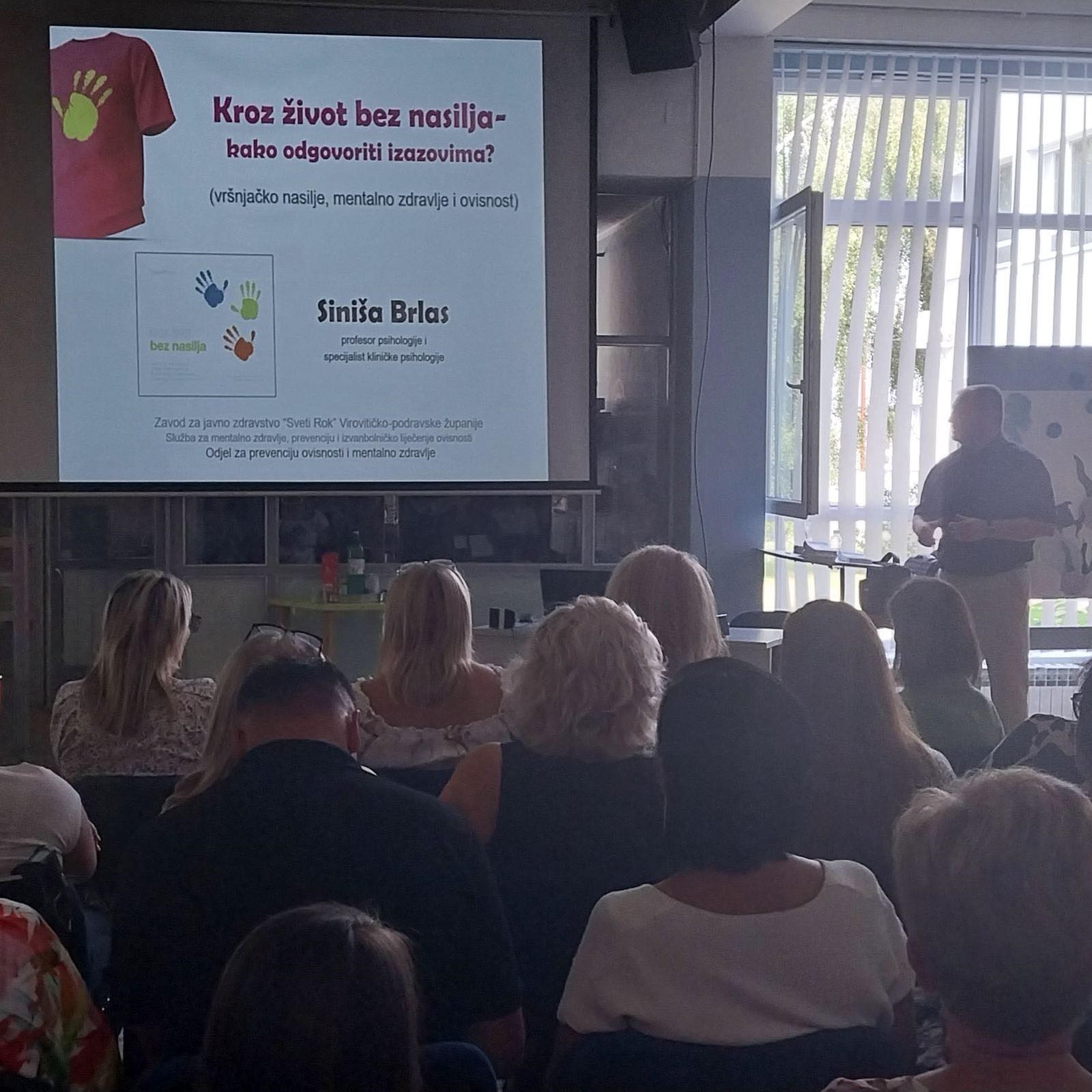 Profesor Brlas održao je predavanje o modelu prevencije i suzbijanja vršnjačkog nasilja „Kroz život bez nasilja – prevencija vršnjačkog nasilja kao rizika za mentalno zdravlje, emocionalni razvoj i ovisnost djece i mladih“. Ovaj se model već godinama uspješno provodi u Virovitičko-podravskoj županiji u kojoj je i razvijen.
