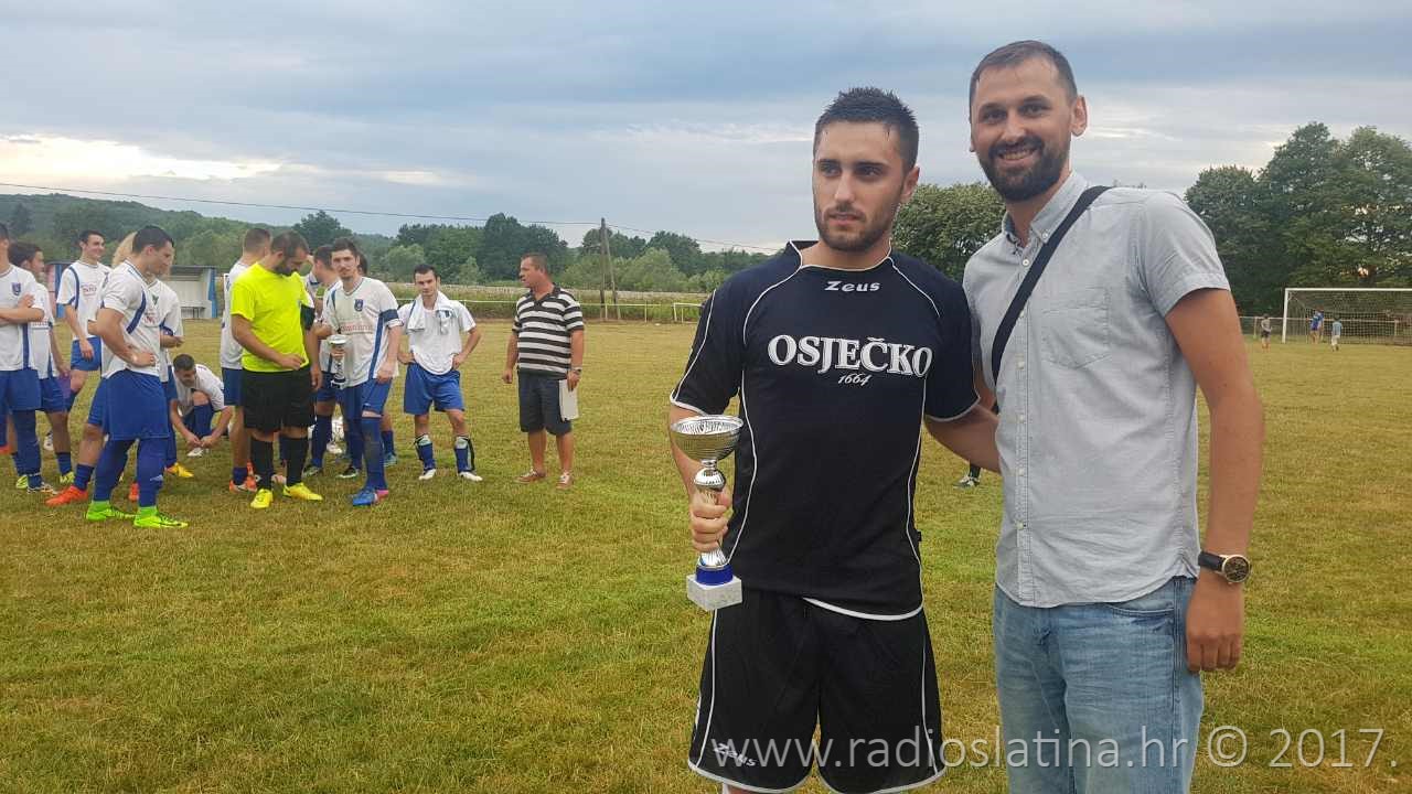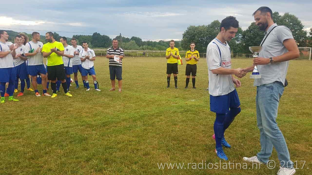 Izaslanik slatinskog gradonačelnika Denisa Ostrošića, gradski vijećnik Saša Matijević, uz prisustvo Pave Pokupčića, dopredsjednika NK Slavonije Sladojevci, uručio je pehare za prvo i drugo mjesto dok je za osvojeno treće mjesto pehar uručio Željko Stipanić, tajnik Zajednice športskih udruga grada Slatine uz gradskog vijećnika Iliju Nikolića.. (mk / Foto: R. Turkalj)
