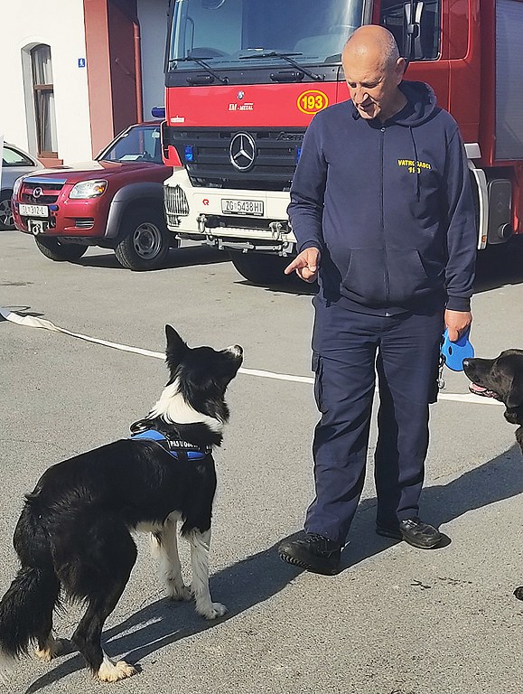 Vodič vatrogasnog potražnog psa u obuci Tomislav Medved iz Nove Bukovice u treningu sa psom Billyjem