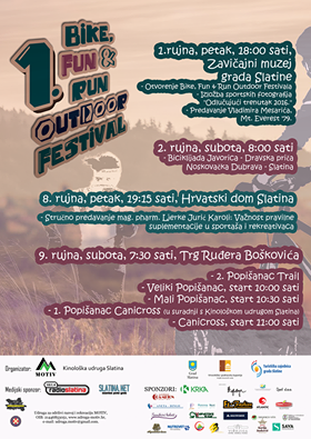 U sklopu obilježavanja Dana Grada Slatine udruga MOTIV u suradnji sa Kinološkom udrugom Slatina organizira 1. Bike, fun & run outdoor festival.