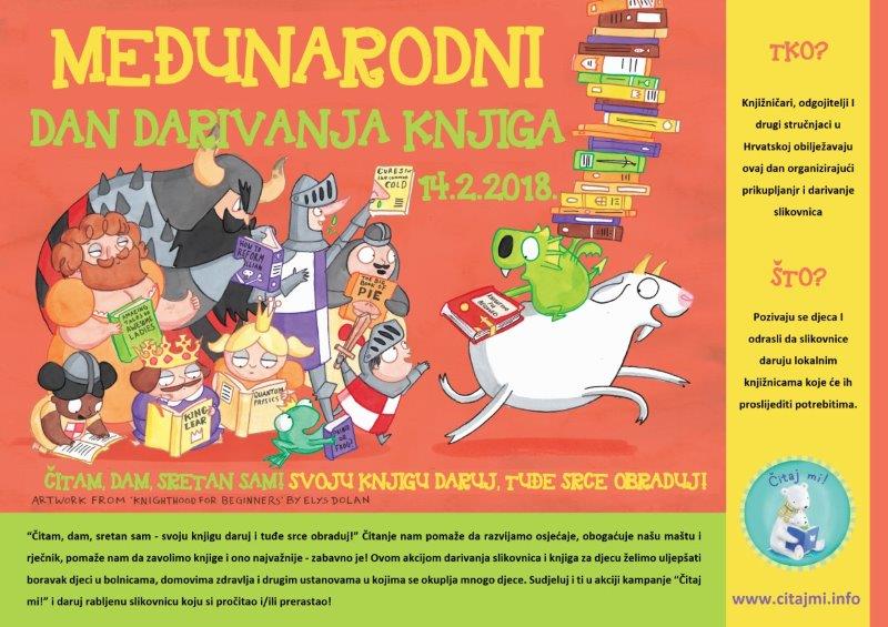 Ujedno vas pozivamo na obilježavanje Međunarodnog dana darivanja knjiga (14.2.2018.) tako što pozivamo djecu i odrasle da donesu slikovnice koje više ne koriste u svoju Gradsku knjižnicu i čitaonicu Slatina, Šetalište Julija Burgera 1, Slatina.