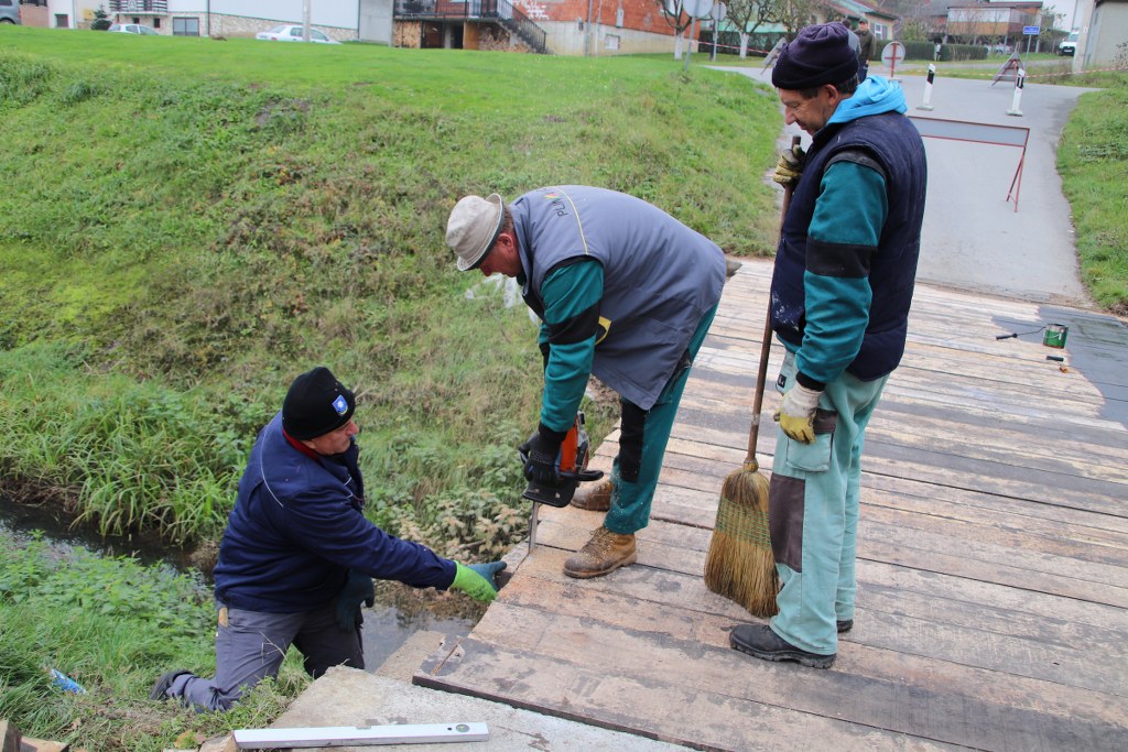 Radovi na izmjeni sekundarne konstrukcije mosta, koji bi trebali biti gotovi do kraja idućeg tjedna, uključuju kompletnu promjenu drvenih mosnica koje su potom zaštićene tankoslojnom lazurom za drvo, zamjenu drvene ograde novom metalnom, te ugradnju žičane mreže na istu kako bi se povećala sigurnost za pješake, a posebice djecu.