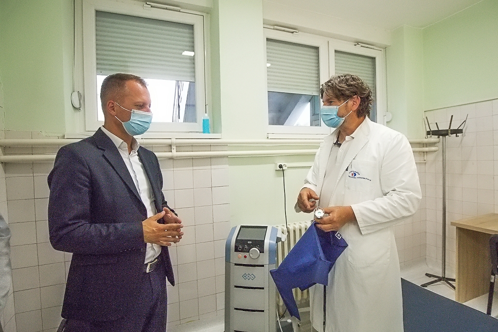 - Nas veseli činjenica da je Dom zdravlja Virovitičko-podravske županije nastavna baza Fakulteta za dentalnu medicinu i zdravstvo Osijek, Sveučilišta Josipa Jurja Strossmayera u Osijeku, gdje studenti obavljaju vježbe u sklopu kurikuluma nastave, stručnu praksu propisanu Zakonom o obrazovanju te obvezni pripravnički staž nakon završetka školovanja je i činjenica da pacijentima omogućimo što kvalitetniju i opsežniju zdravstvenu zaštitu. No, u zadnje vrijeme smo, uz podršku Virovitičko-podravske županije, zanovili uređaj za terapiju hladnim zrakom. Njime je olakšana aplikacija krioterapije kako za fizioterapeuta tako i pacijenta, naravno uz bolji i sigurniji učinak krioterapije. Tu je i uređaj za trakciju, kojim se omogućuje „oslobađanje“ konflikta struktura u vertebro – diskalnom segmentu /VDS/ u području vrata ili slabinskom /lumbalnom/ dijelu kralježnice.