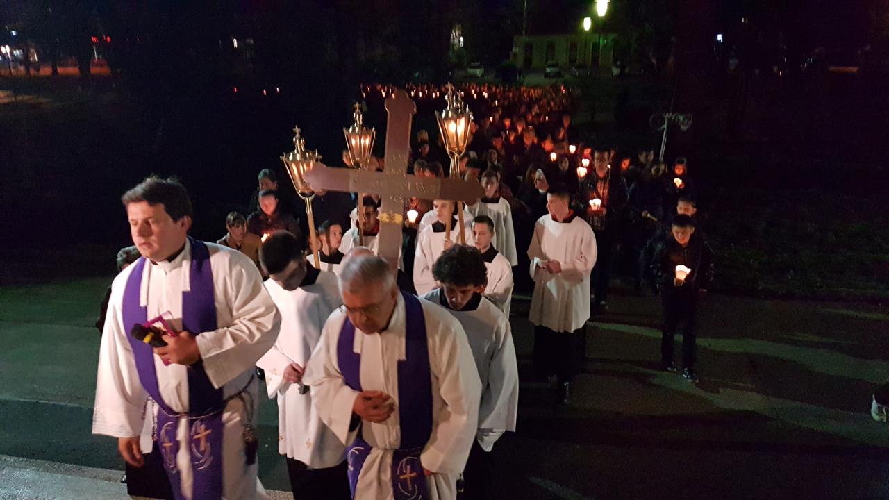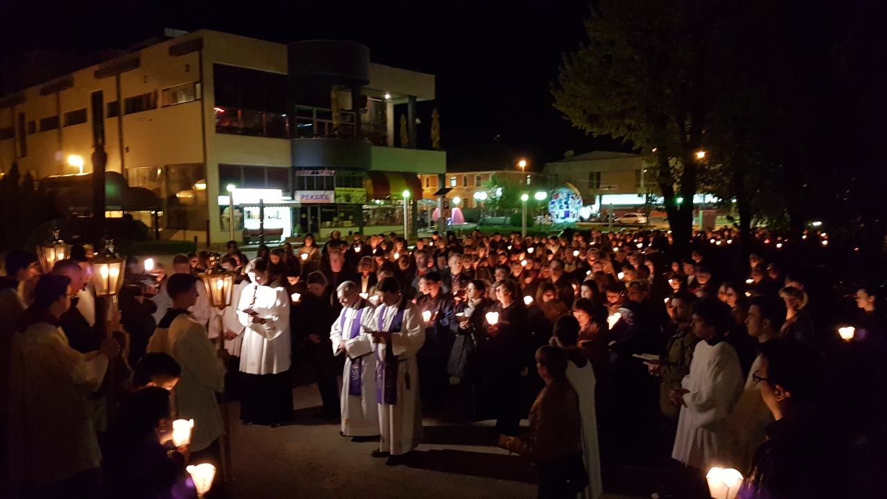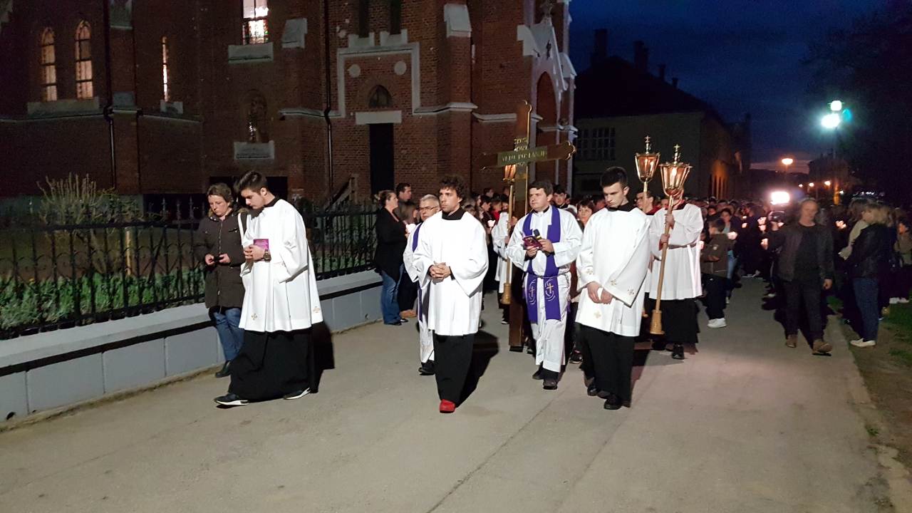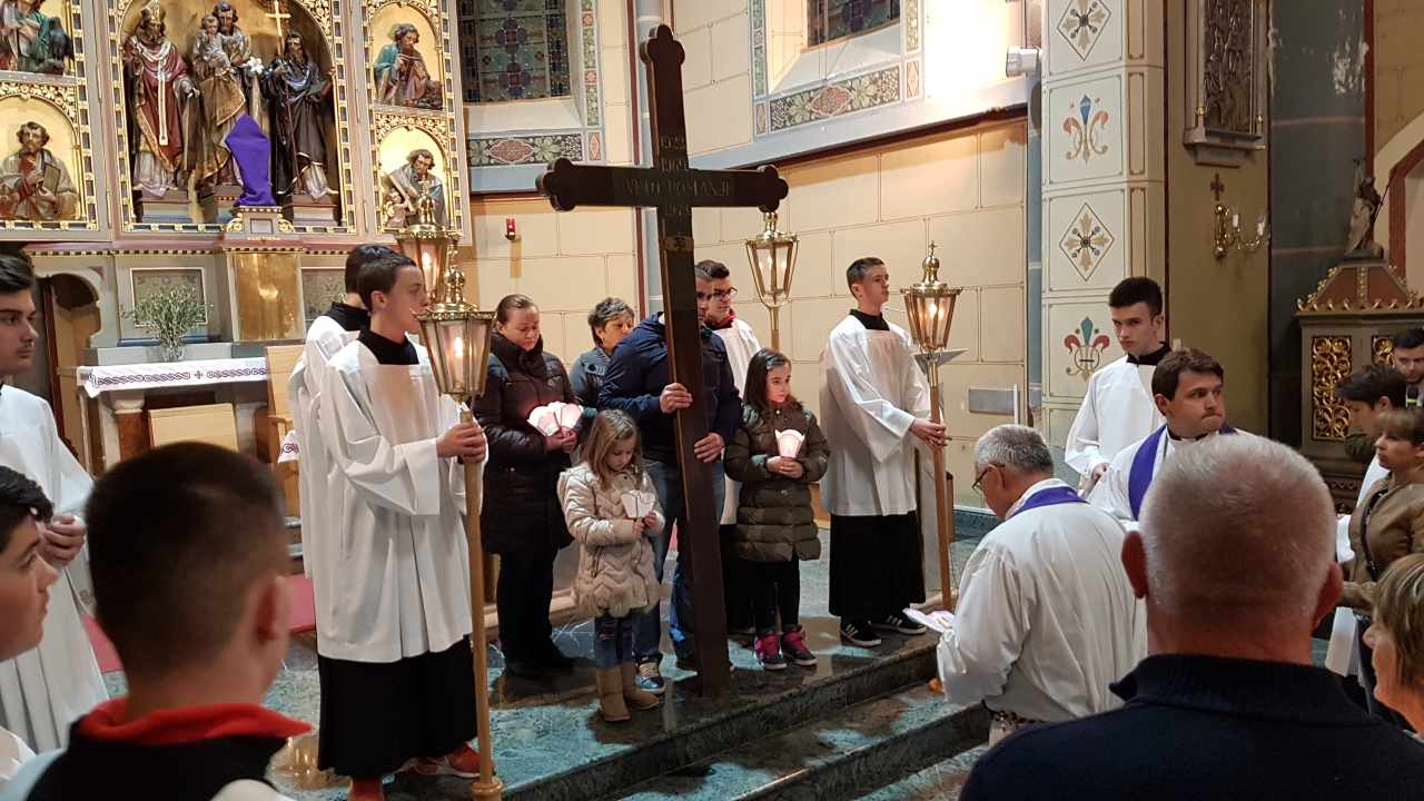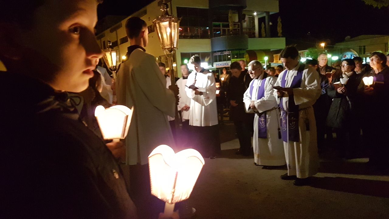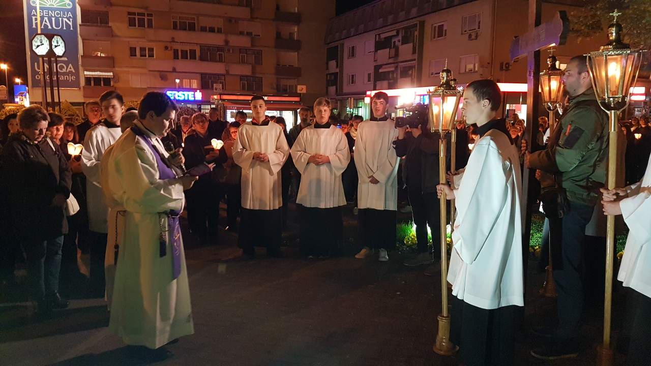 Prva postaja je bila ispred crkve sv. Josipa, nakon čega je procesija sa svijećama prošla po ostalim postajama koje su bile raspoređene po Parku, a zadnja postaja bila je u crkvi sv. Josipa. Na križnom putu molilo se za obitelji, očeve, majke, djecu, bake i djedove, za bolesne i osamljene i za oproštenje grijeha.