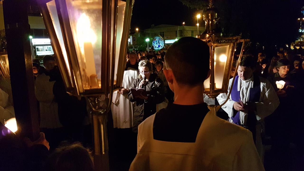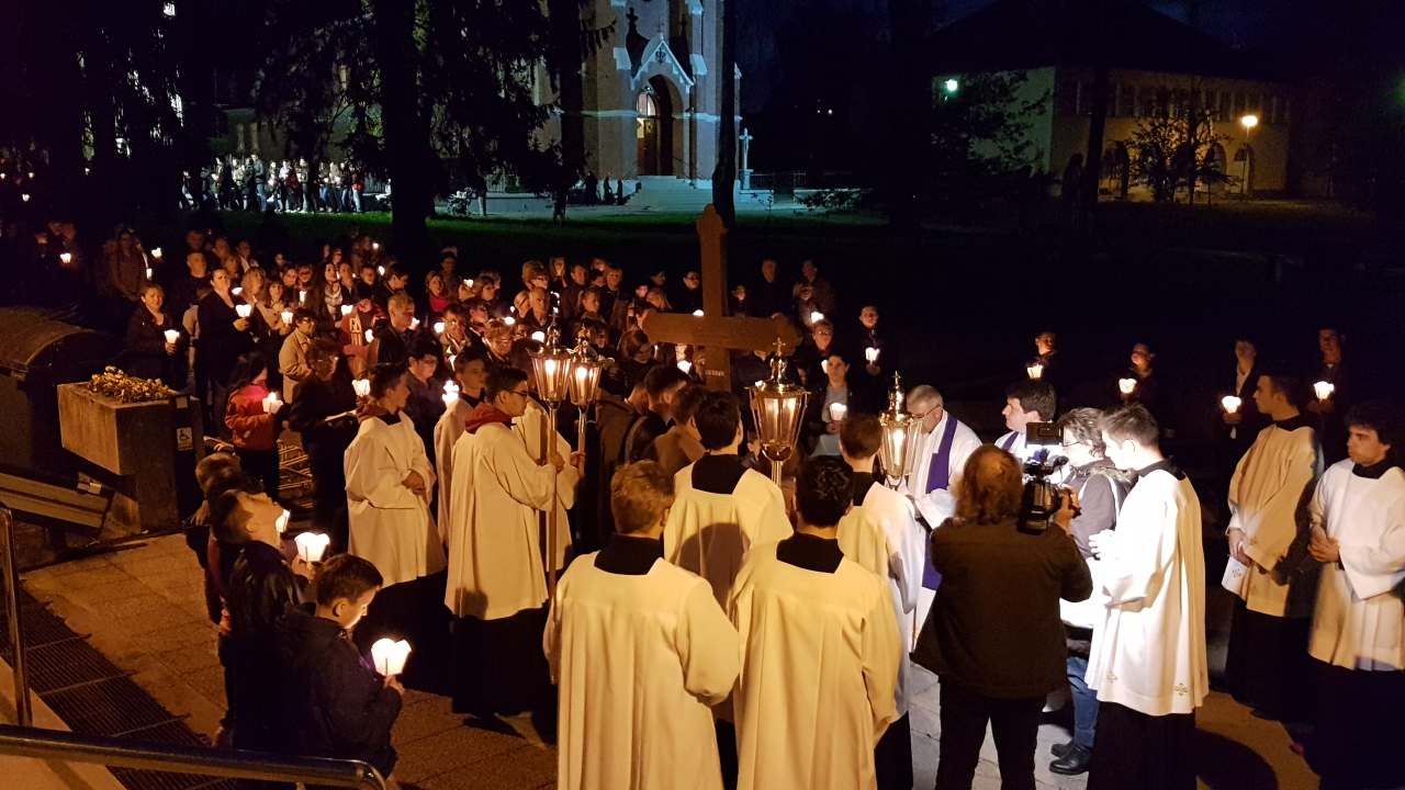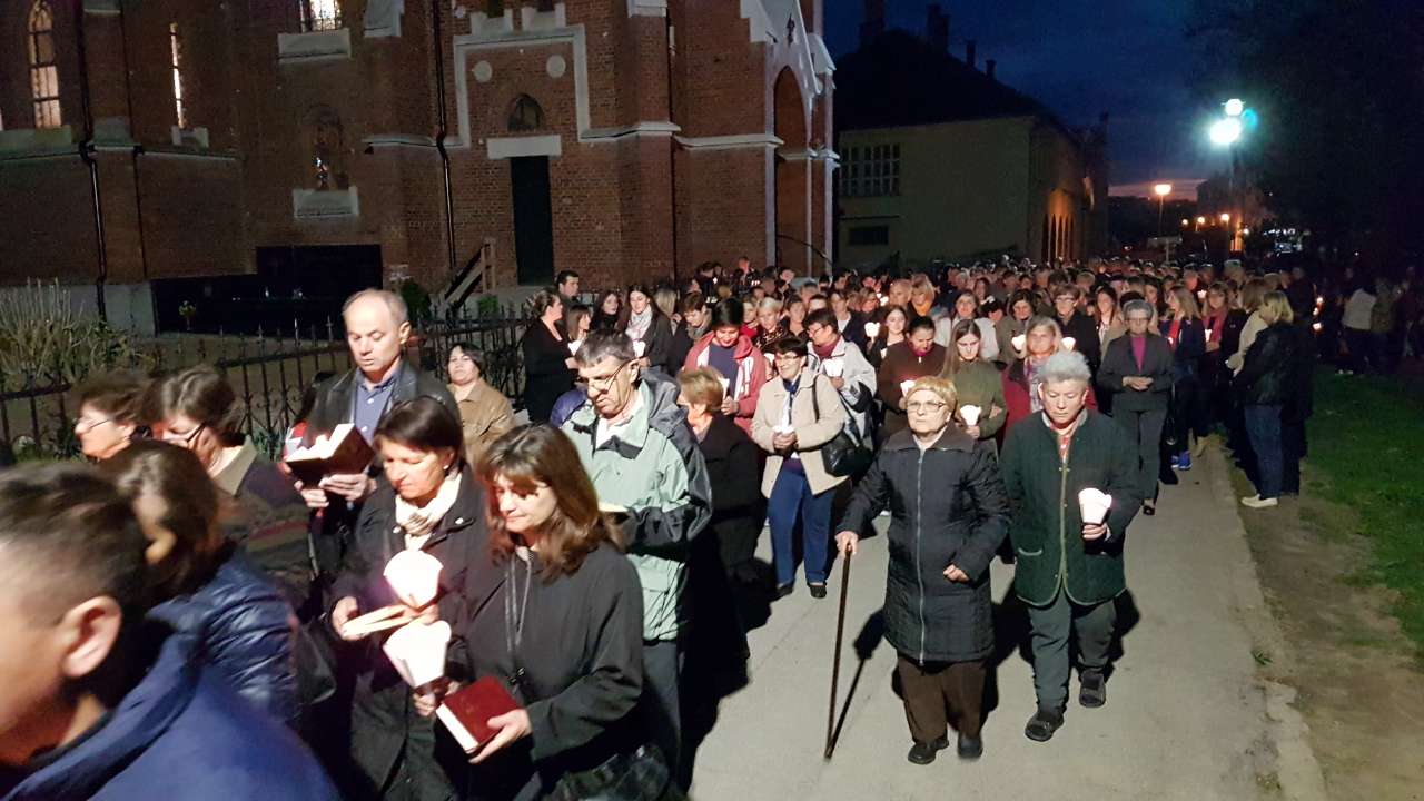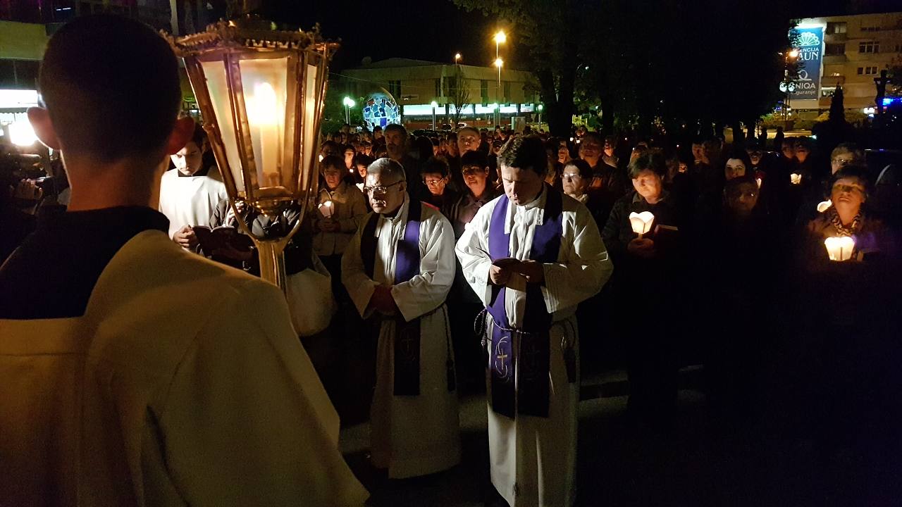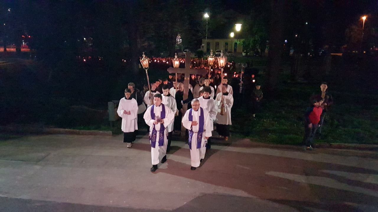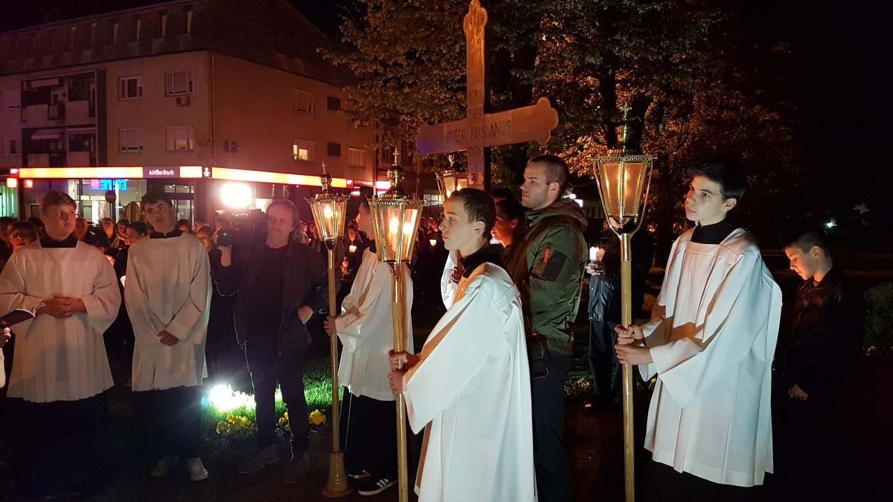 Prva postaja je bila ispred crkve sv. Josipa, nakon čega je procesija sa svijećama prošla po ostalim postajama koje su bile raspoređene po Parku, a zadnja postaja bila je u crkvi sv. Josipa. Na križnom putu molilo se za obitelji, očeve, majke, djecu, bake i djedove, za bolesne i osamljene i za oproštenje grijeha.