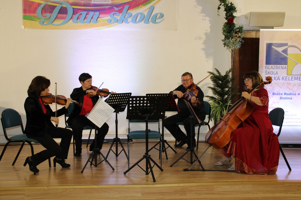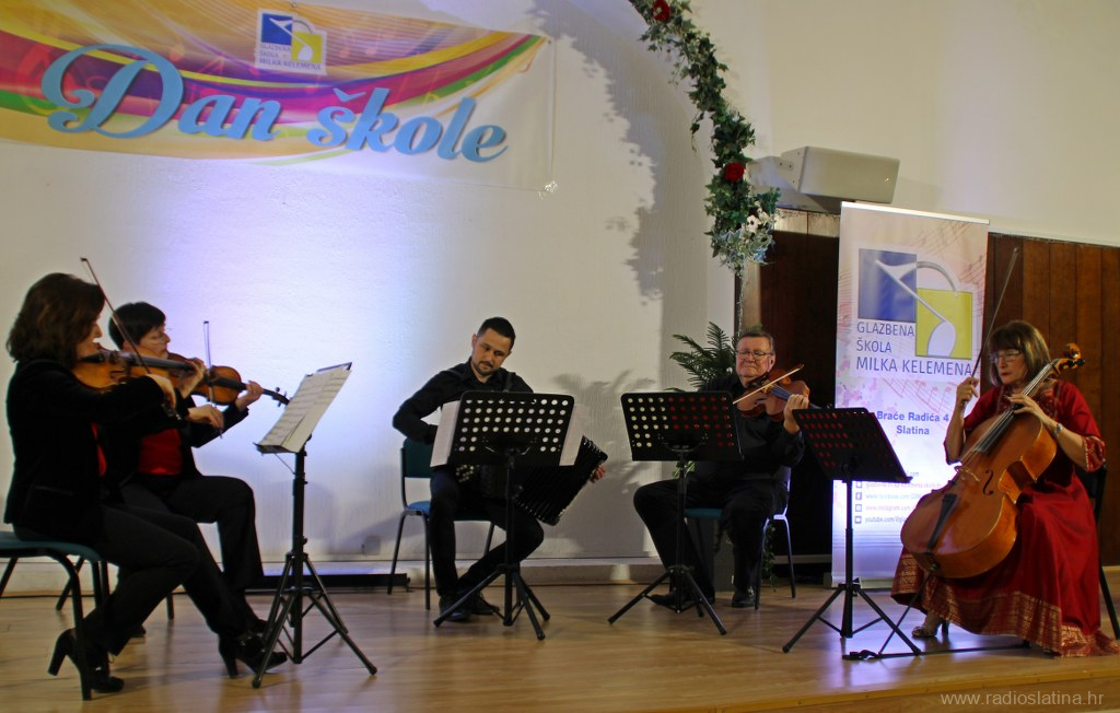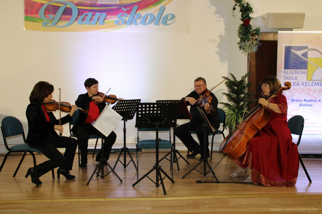 Glazbena škola Milka Kelemena Slatina i ove je godine dostojanstveno obilježila Dan škole kroz dva svečana koncerta. Nakon prve večeri posvećene mladim talentima, jučerašnja( četvrtak) završnica proslave pripala je vrhunskim profesionalcima, renomiranom Gudačkom kvartetu Rucner i njihovim domaćinima, učiteljima škole