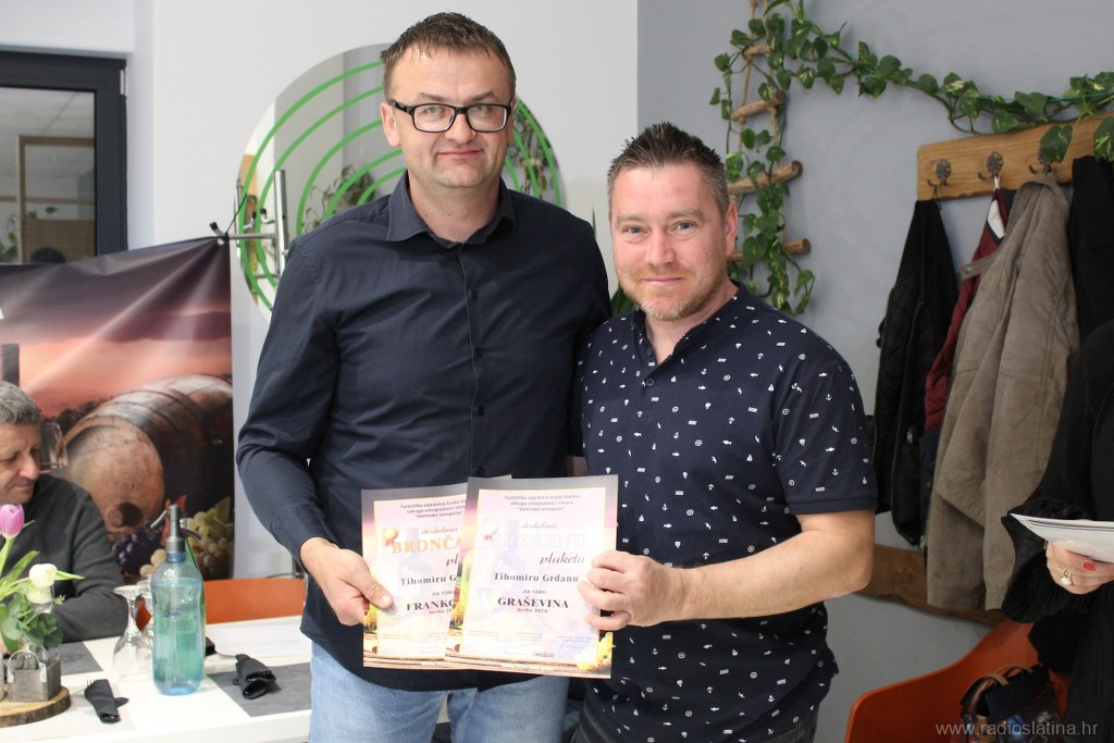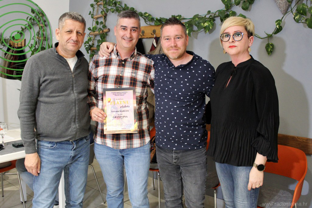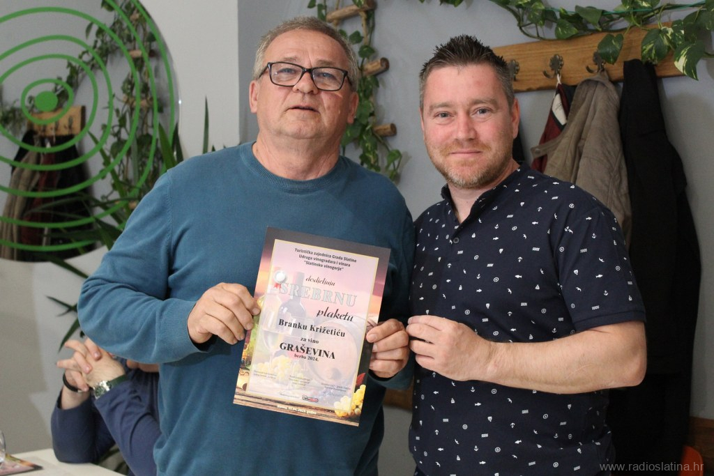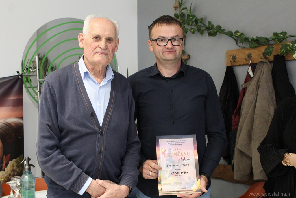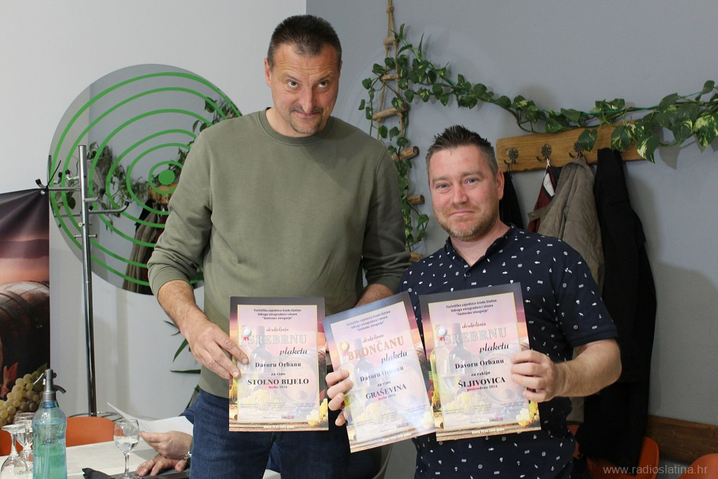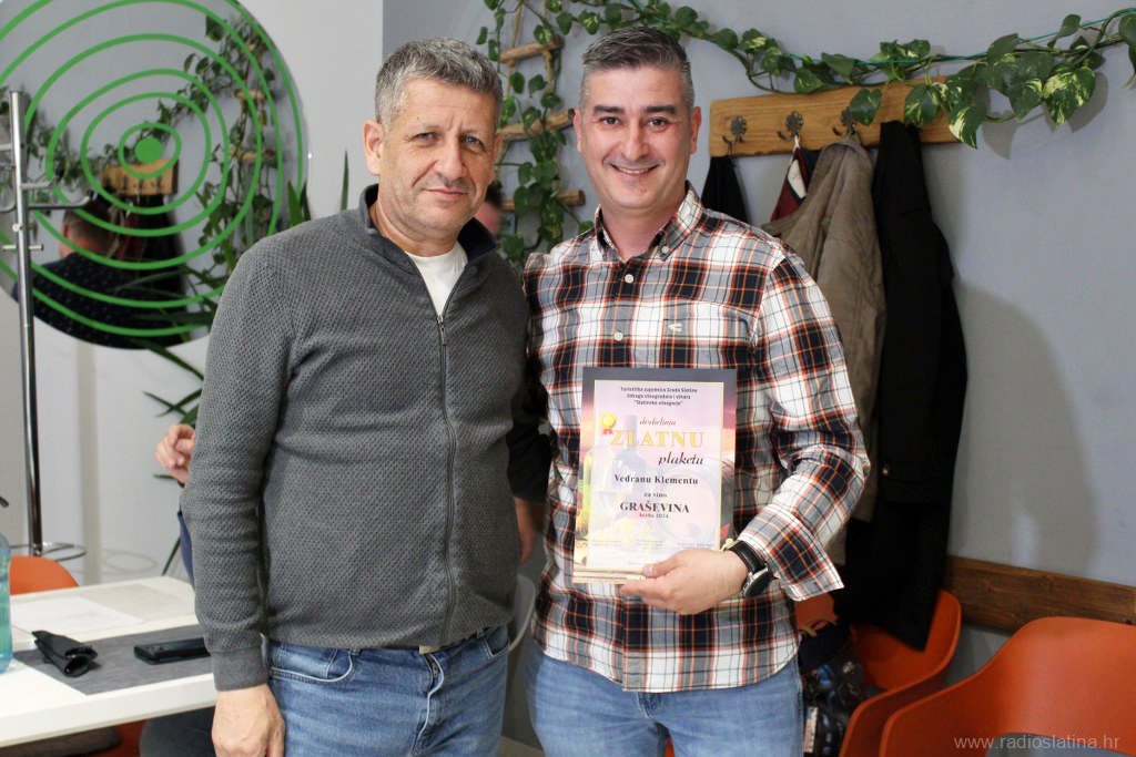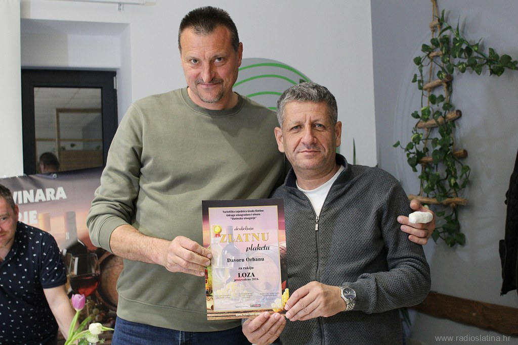 Plakete i priznanja najboljima uručili su predsjednik Udruge vinogradara i vinara “Slatinsko vinogorje” Josip Doležal, dopredsjednik Mirko Lukač, zamjenik gradonačelnika Ilija Nikolić i Sunčica Novak Pavličević ispred SIC-a.