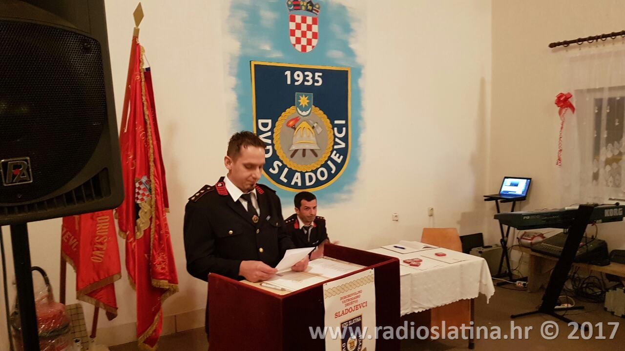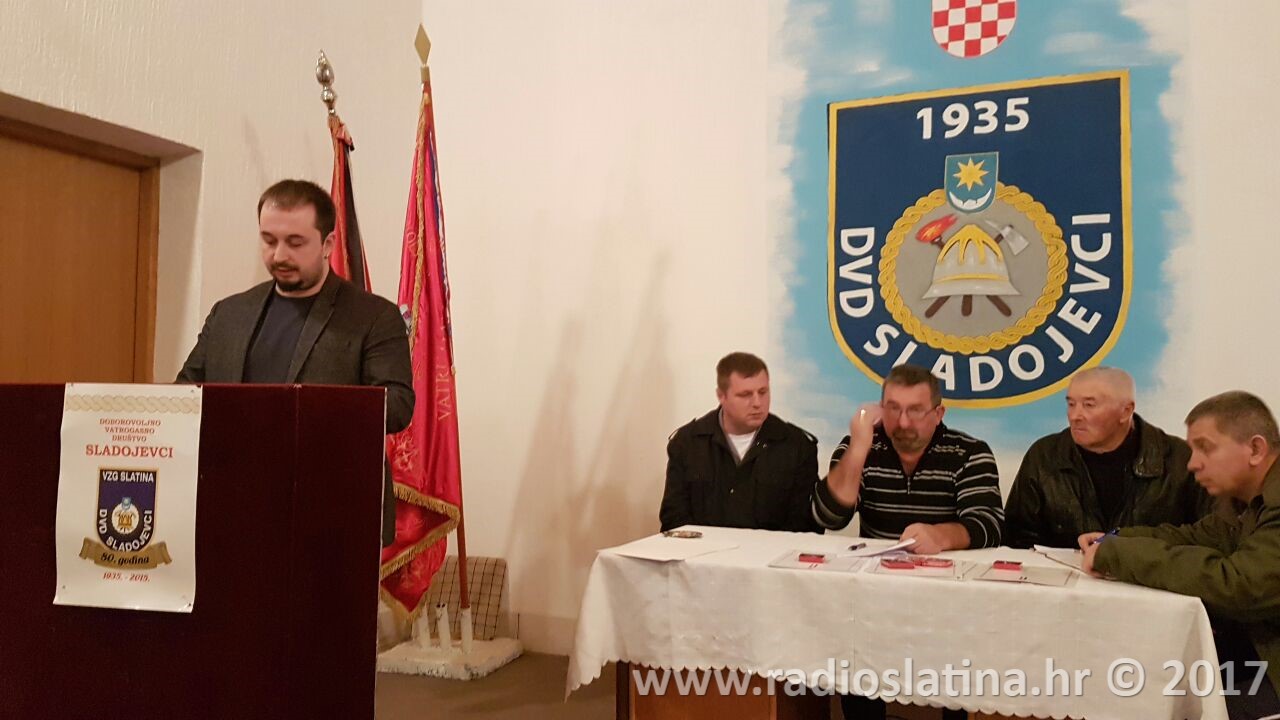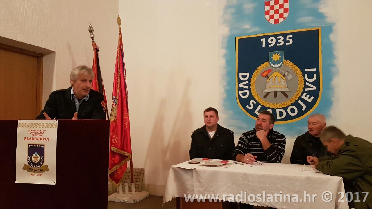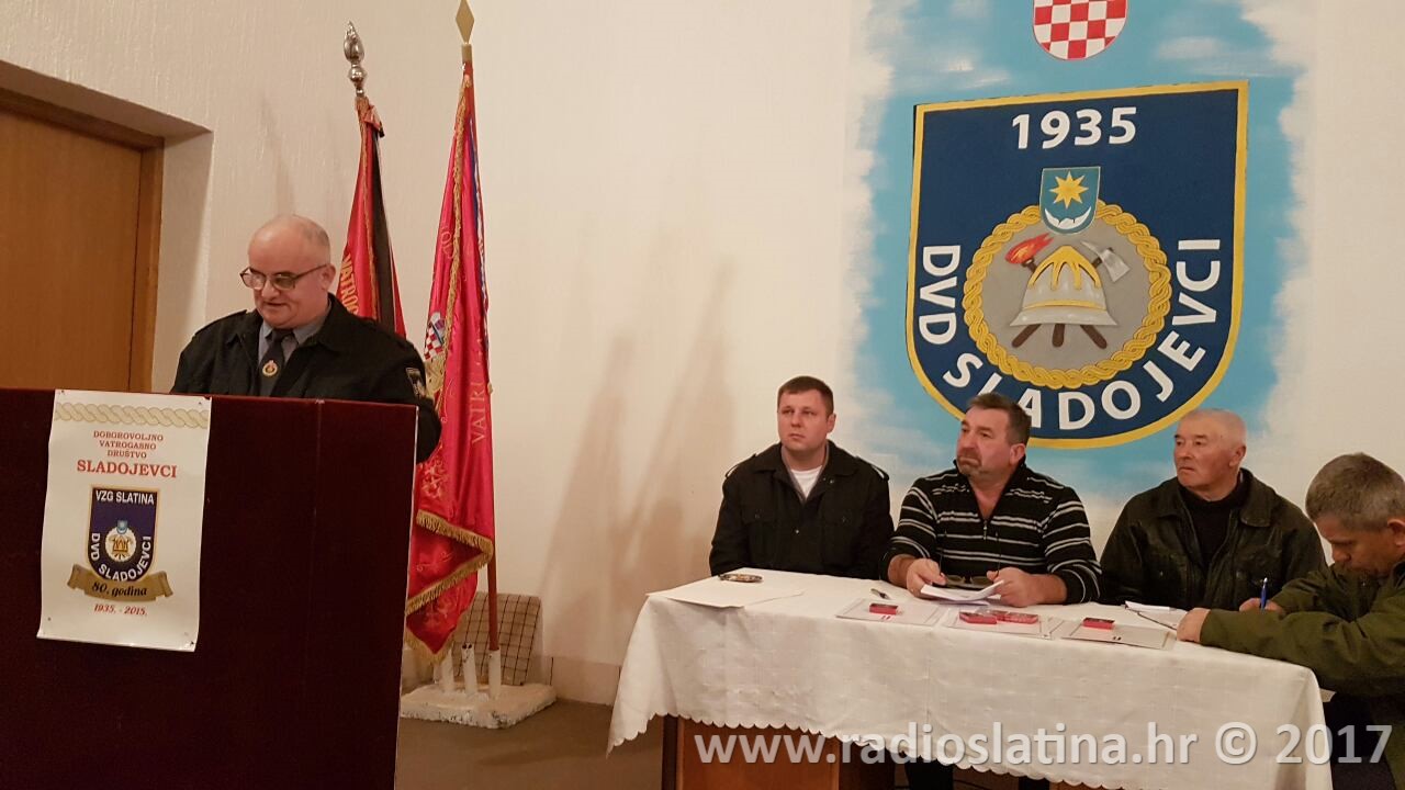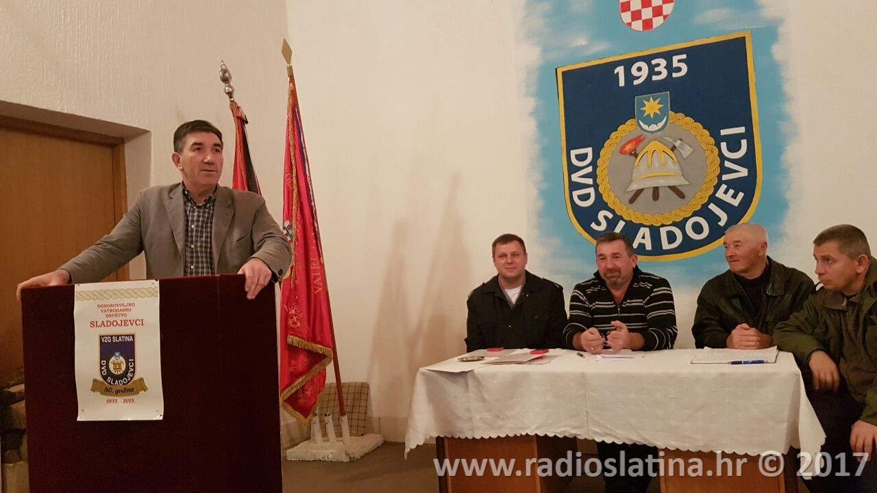 Izvješće o radu udruge iznio je predsjednik DVD-a Josip Vajnhal koji je između ostalog naglasio veliki uspjeh muške dječje ekipe na županijskom natjecanju u Trovancu gdje je osvojeno drugo mjesto što predstavlja jedan od najvećih rezultata u novijoj povijesti DVD-a. Istaknuo je da se time potvrđuje dobar rad društva sa mladim uzrastima, ali i da postoji velika mogućnost napredovanja i u seniorskim ekipama. Tijekom ljetnih mjeseci vršena su dežurstva u vezi sa povećanom mogućnošću od požara, te su po potrebi vršena ispumpavanja bunara mještana Sladojevaca. Osim nabavka dosta opreme predsjednik je naglasio da se redovno održavaju i radne akcije uređenja okoliša oko doma. Na domu su također promijenjeni i prozori te je obnovljeno spremište i garaža budućeg vozila DVD-a, a sve u suradnji s Gradom Slatinom i VZG Slatina. Predsjednik Vajnhal je posebno istaknuo i organiziranje podjele poklona za djecu iz Sladojevaca koja je organizirana povodom sv. Nikole.