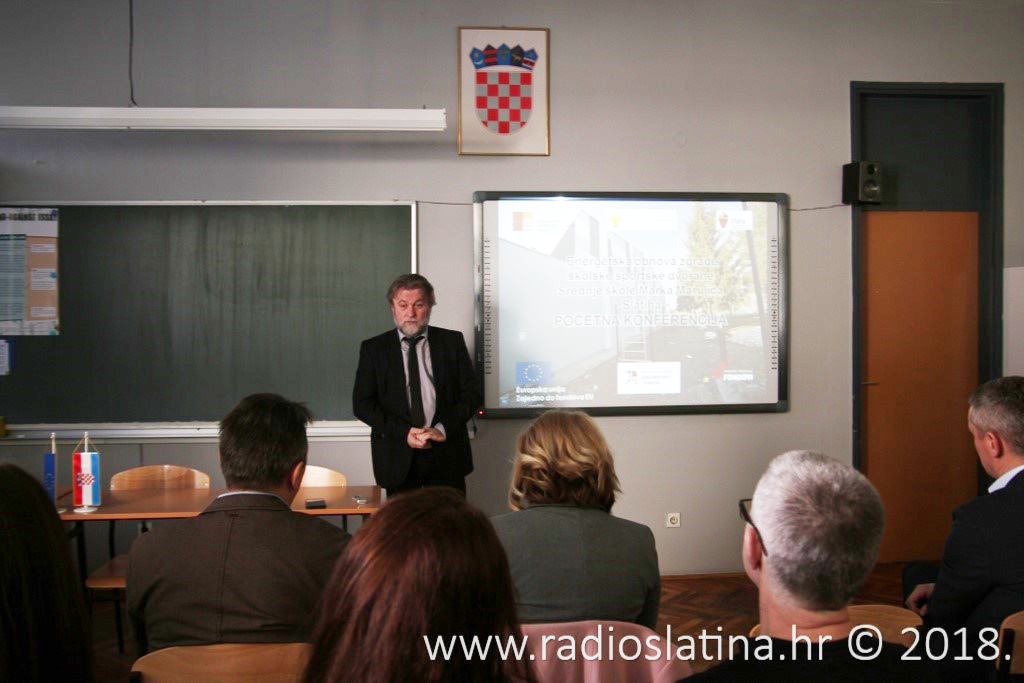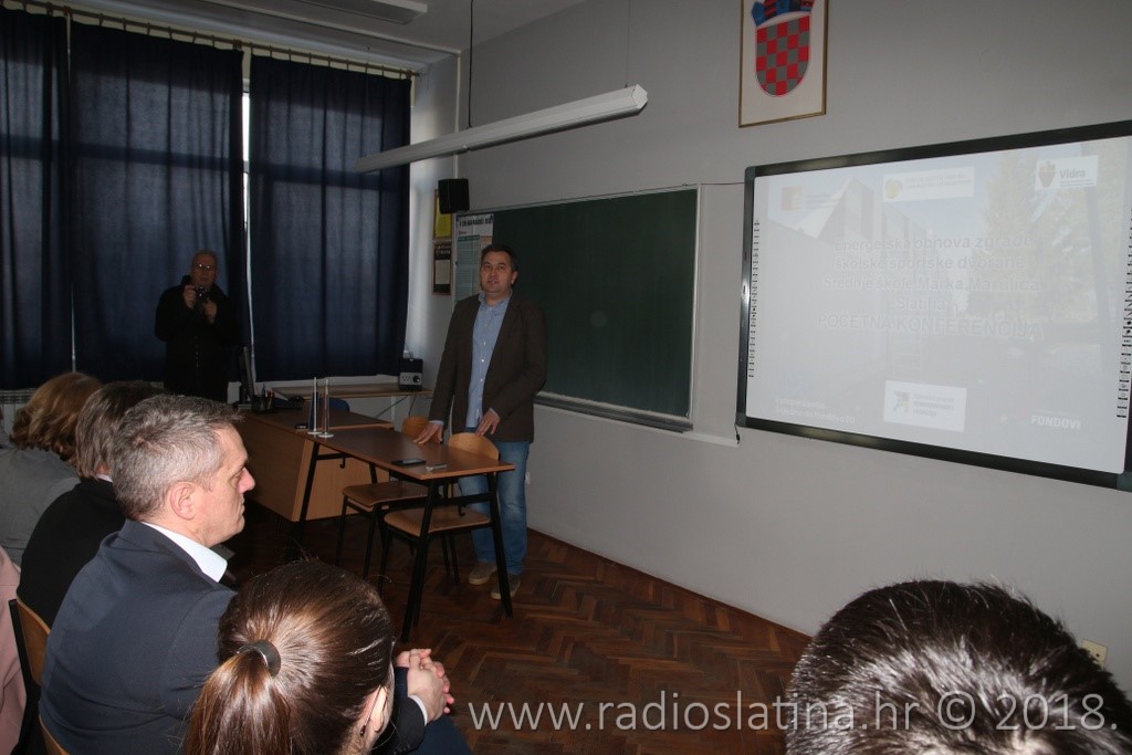 U petak, 9. ožujka u Srednjoj školi Marka Marulića Slatina održana početna konferencija projekta ”Energetska obnova zgrade školske sportske dvorane Srednje škole Marka Marulića Slatina”. Početnoj konferenciji nazočili su zamjenik župana Virovitičko-podravske županije Darko Žužak, predsjednik Županijske skupštine Virovitičko-podravske županije Miran Janečić, pročelnica Upravnog odjela za prosvjetu, kulturu, šport i tehničku kulturu Virovitičko-podravske županije Vesna Šerepac, zamjenica gradonačelnika Grada Slatine, Sanja Mrzljak Jovanić i privremeni pročelnik Upravnog odjela za razvoj Grada Marin Kokorić.