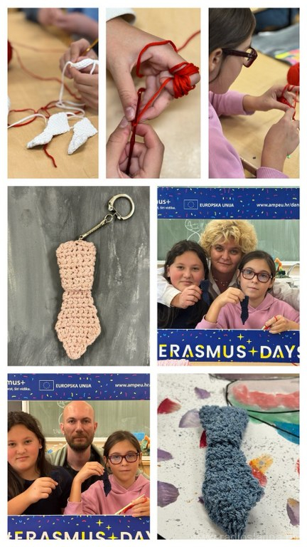 Pod nazivom radionice „Petljom povezani – Erasmus i kravata“ učenici su obilježili Erasmus dane kroz kreativnu radionicu heklanja kravata. Od šarenih niti vune i konca nastali su unikatni privjesci u obliku kravate – simbola koji povezuje hrvatsku tradiciju i europski identitet.