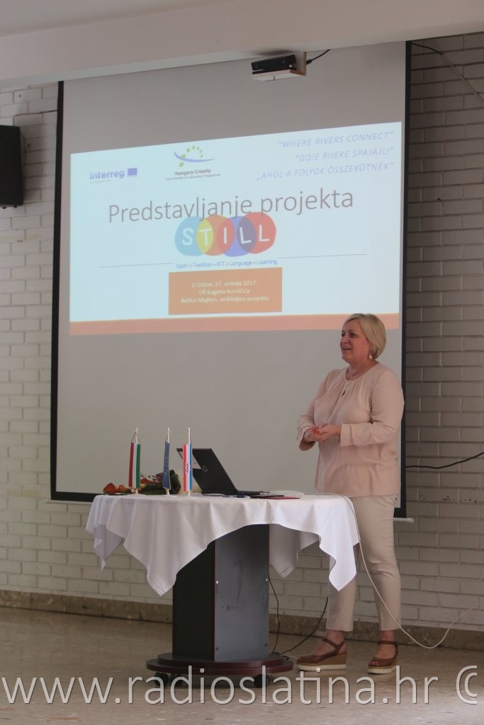U holu osnovne škole Eugena Kumičića Slatina jučer je održana početna konferencija projekta STILL. Ime projekta je akronim punog naziva: SPORT, ICT, JEZIČNE KOMPETENCIJE U SLUŽBI OČUVANJA TRADICIJE OBRTNIŠTVA I KONKURENTNOSTI NA TRŽIŠTU RADA UČENIKA SLATINE I SIGETVARA.