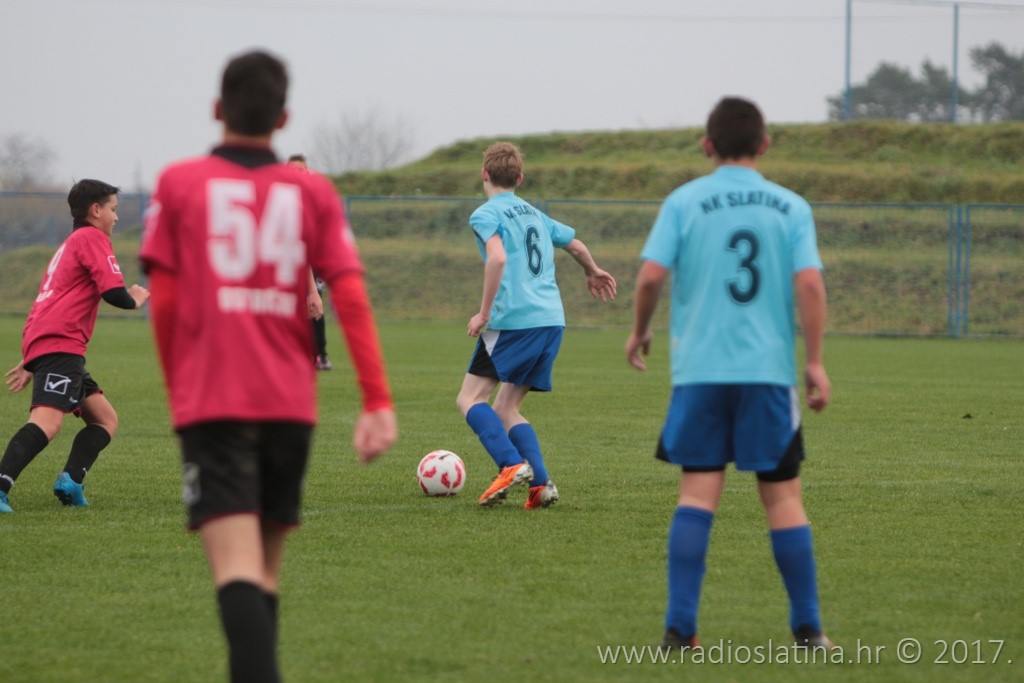 Susret je u regularnom vremenu završio bez golova. I jedni i drugi postavili su se prilično oprezno što i ne čudi s obzirom na visinu uloga u ovoj specifičnoj eliminacijskoj utakmici. Prvo poluvrijeme Slatina je bila puno bolja, dok su se gosti oslobodili grča u nastavku ove taktičke predstave povezavši igru, ali na sreću Slatine ne i efikasnost. Kako se radi selekciji koja se natječe u 1. Hrvatskoj nogometnoj ligi za pionire ne možemo se oteti dojmu da su gosti iz Sesvete prilično podcijenili snagu mlade selekcije slatinskog nogometnog kluba što im se u konačnici i osvetilo pri ruletu jedanaesteraca, gdje je mladi vratar Slatine Gabriel Fuljek upisao dvije obrane, a Frenki Šterl sigurno pogodio u posljednjoj seriji za veliko slavlje sjajne Slatine vođene perspektivnim trenerom Dariom Petrovićem, ali i s obzirom na vremenske uvjete, sasvim solidno popunjene tribine stadiona Antuna Tone Butorca. (dj / Foto: Marijo Kokorić)