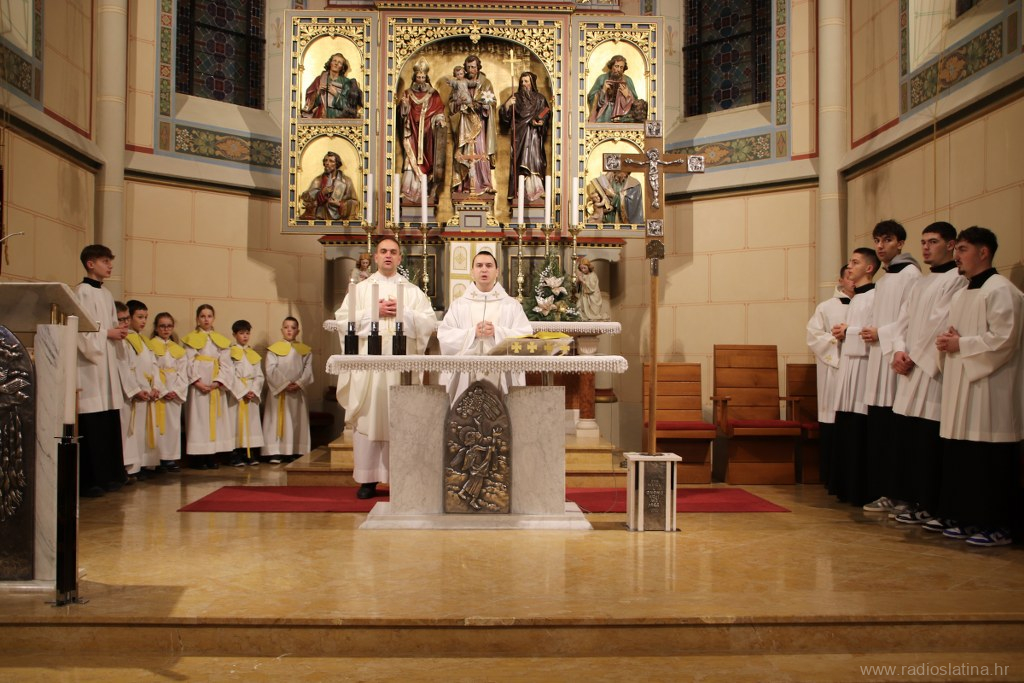 Tako je nakon pobožnosti sv. Josipu, današnje euharistijsko slavlje predvodio fra Vinko Brković, župni vikar u Našicama, vicepromicatelj pastorala zvanja i područni duhovni asistent frame, u koncelebraciji sa župnikom slatinske Župe sv. Josipa vlč. Tomislavom Dokozom, dok je pjevanje animirao Župni mješoviti zbor Župe sv. Josipa.
