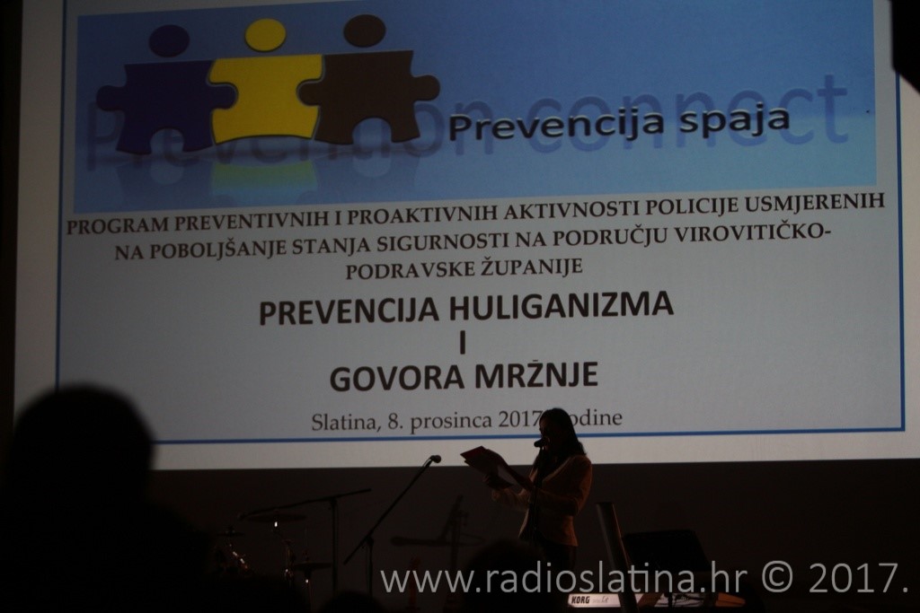 Policijska uprava virovitičko-podravska je uz podršku Ravnateljstva policije i partnera, policije njemačke pokrajine Baden-Wurttenberg i Grada Slatina, organizirala je edukativni program “Prevencija huliganizma i govora mržnje”, koji je održan jučer u kino sali u Slatini.