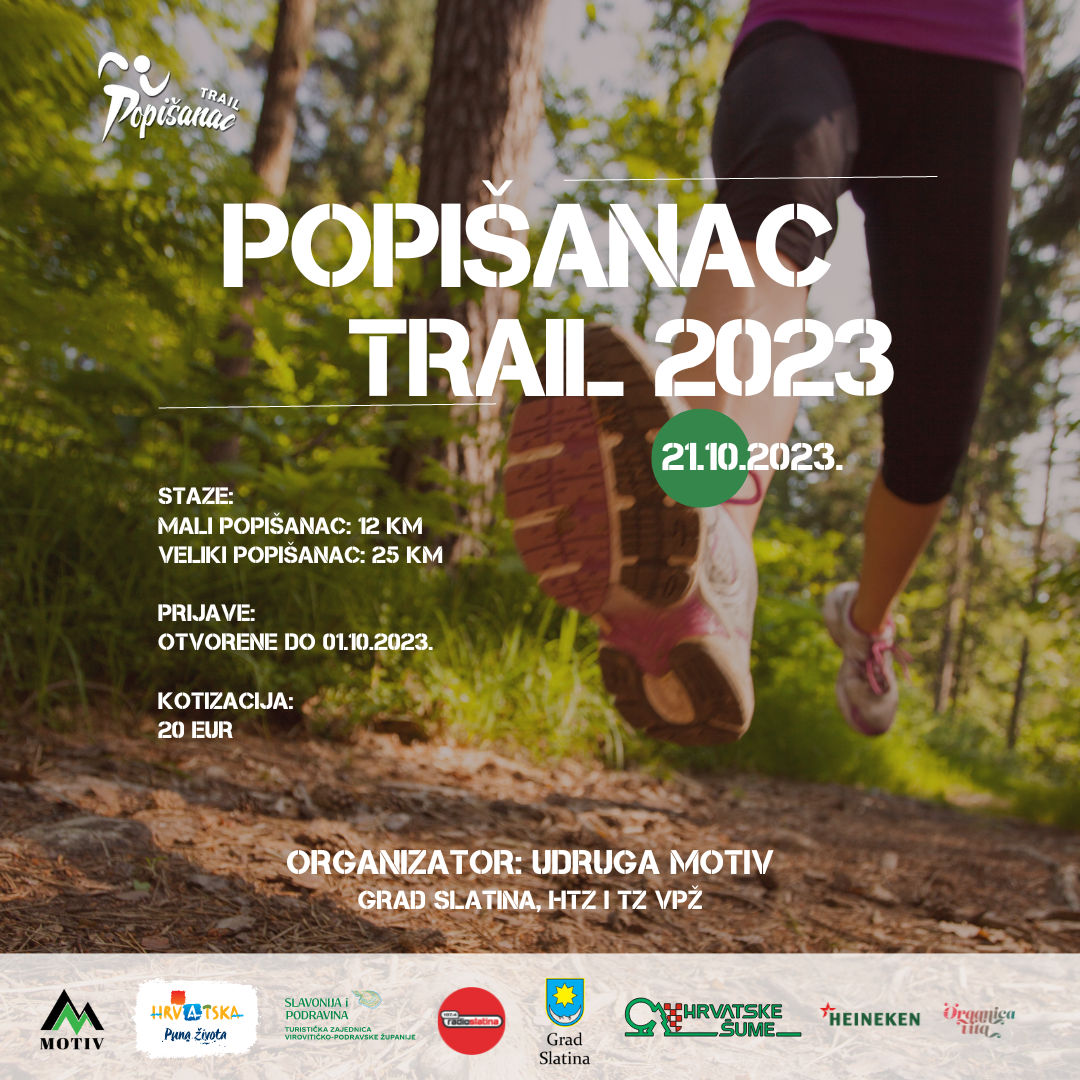 U sklopu Slavonsko-baranjske Trail lige 2023., u Slatini će se 21. listopada održati osmi po redu Popišanac Trail kojeg organizira Udruga MOTIV uz podršku Grada Slatine, Turističke zajednice Virovitičko-podravske županije i Hrvatske turističke zajednice.