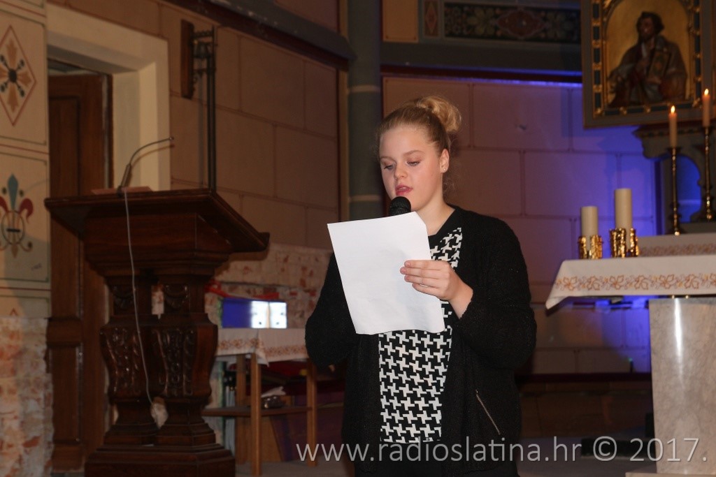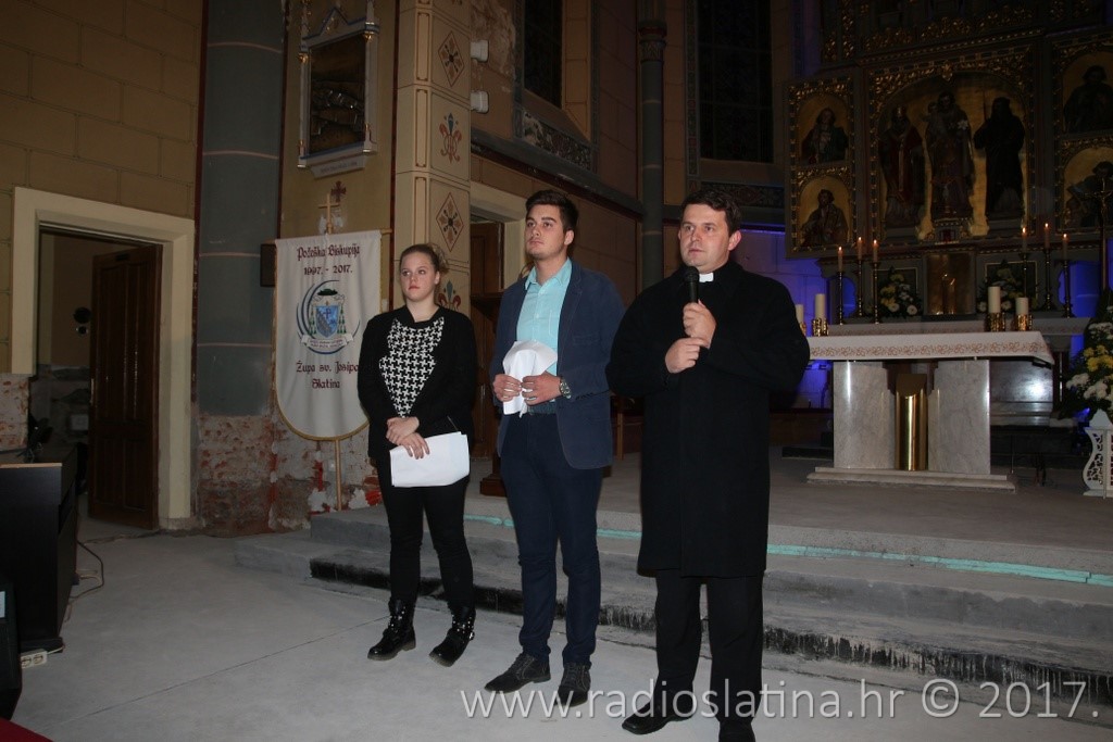 Zahvaljujem se i gosp. Mihaelu Dlabu za rasvjetu koja je stvorila ovaj lijepi ugođaj na koncertu. Najavljujem i još nešto lijepo, a to je još jedan koncert pred sam blagdan Božića. Taj Božićni koncert biti će održan u kino dvorani Pučkog otvorenog učilišta i biti će humanitarnog karaktera. Naime već četvrtu godinu za redom slatinske župe pomažu jedno sirotište u Sarajevu koje se zove Stadlerov dječji dom “Egipat”. Tamo se nalazi 30ak djece bez roditelja koja su u znak zahvalnosti izrazila želju da dođu u Slatinu. Žele doći i osobno sudjelovati u programu tog Božićnog humanitarnog koncerta i na taj način zahvaliti se za sve ono što smo kroz ove godine učinili za njih.”