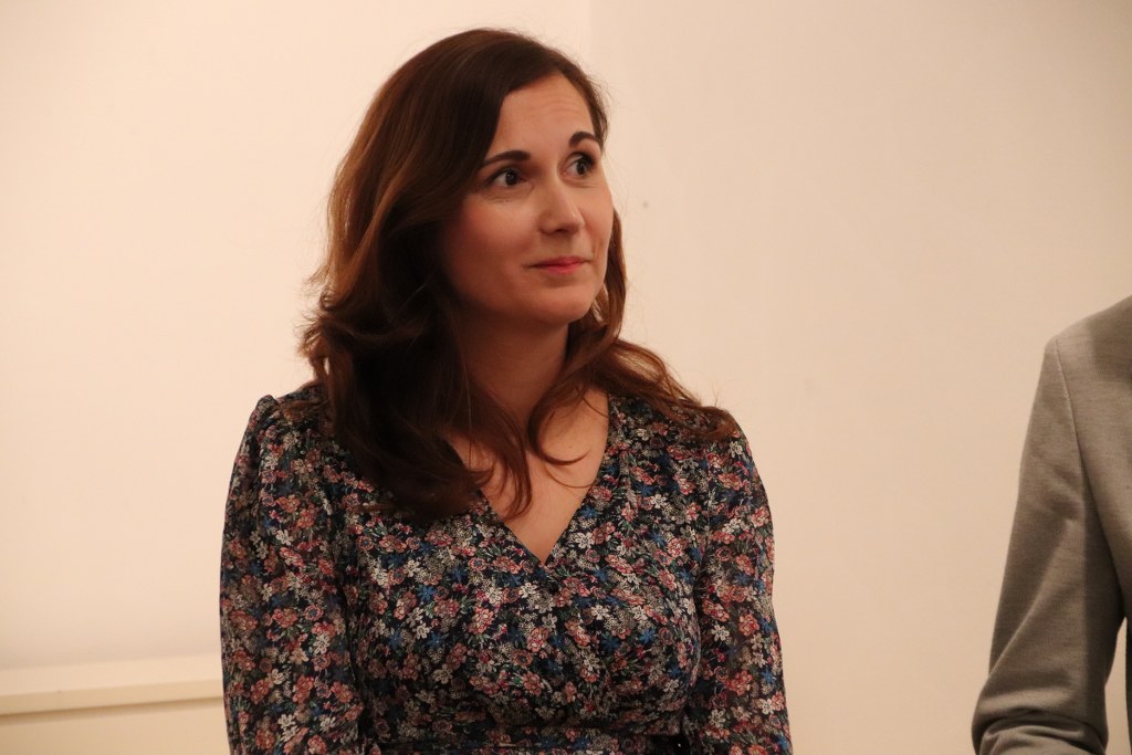 Potom se s nekoliko riječi obratila nastavnica Hrvatskog jezika, prof. Sanja Mrzljak Jovanić pod čijim su mentorstvom u pripremi izložbe sudjelovali učenici 3. razreda ekonomije u Srednjoj školi Marka Marulića Slatina: Lorena Vujić, Maria Adžić, Emina Kovač, Marinela Marinković, Lana Šerer, Mihaela Tunić, Niko Grubač i Lana Morović (NO ekonomist).