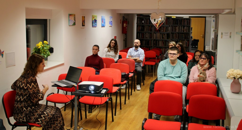U Gradskoj knjižnici Viktora Žmegača Slatina danas (utorak,25.studeni 2025.) je održano predavanje Tamare Sadlovski, edukacijske rehabilitatorice iz Obiteljskog centra, Područne službe Virovitičko-podravske. Predavanje pod nazivom “Tolerancija bez razumijevanja osoba s invaliditetom-je li to dovoljno?” je dio programa Obiteljski ZUUM.