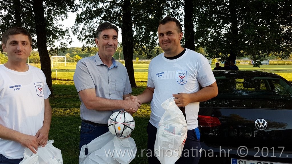 Da bi slavljenički ugođaj bio još potpuniji pobrinuo i gradonačelnik Grada Slatine Ivan Roštaš koji je nakon utakmice u ime gradske uprave klubu poklonio 5 nogometnih lopti koje će klubu zasigurno dobro doći u daljnjem nastavku natjecanja u višem rangu kao i brojnim mlađim uzrasnim kategorijama kluba. Na poklonu se u ime kluba zahvalio njegov predsjednik Mile Pokopčić i Tomislav Kizivat predsjednik Mjesnog odbora Sladojevci.