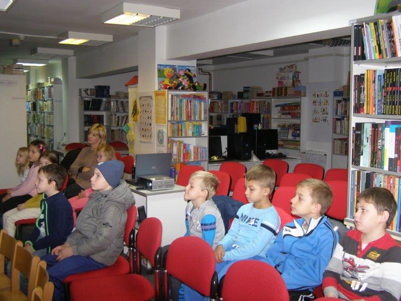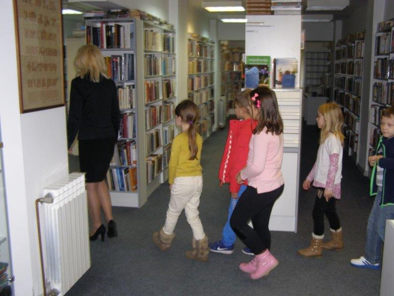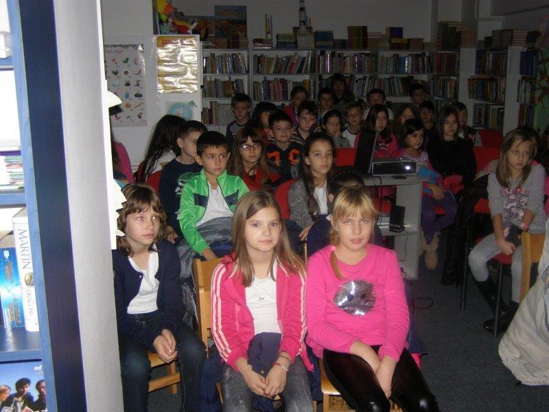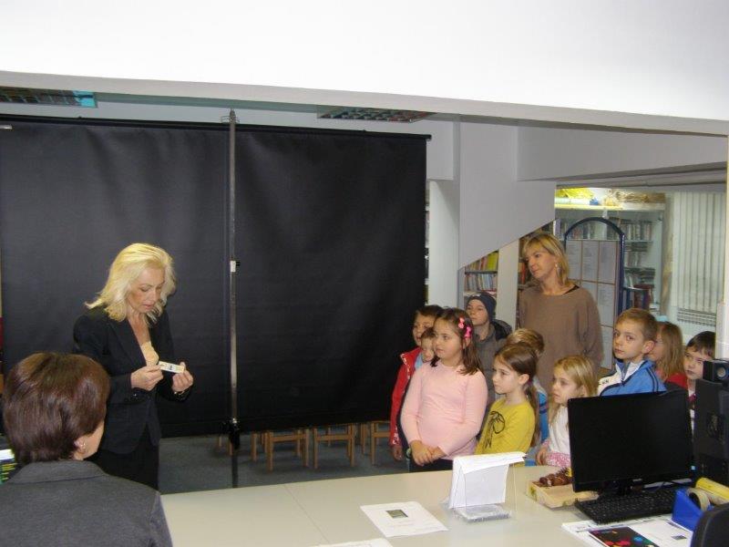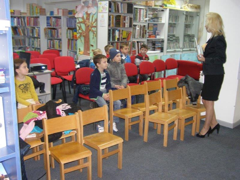Knjižničarka je učenike upoznala sa knjižnom i neknjižnom građom koju mogu u Knjižnici posuđivati, ali i ostalim aktivnostima koje  Knjižnica provodi, a učenici u njima mogu učestvovati.