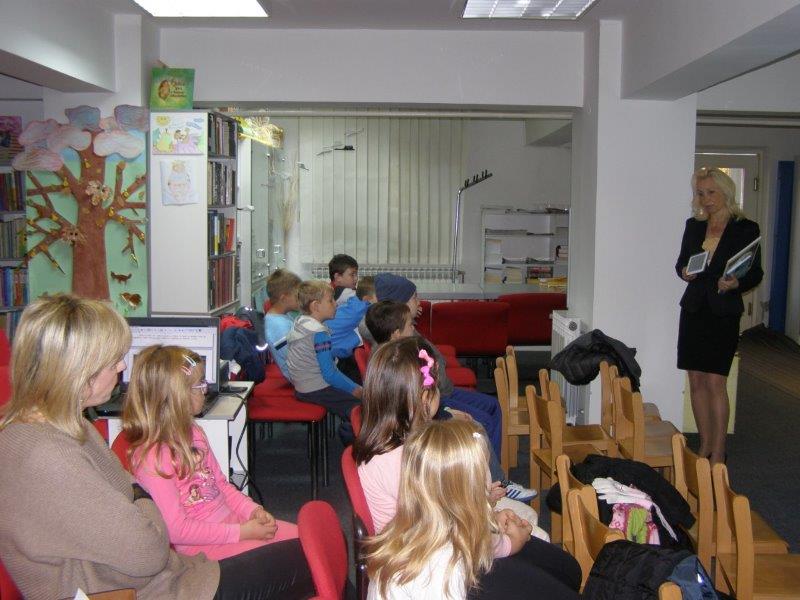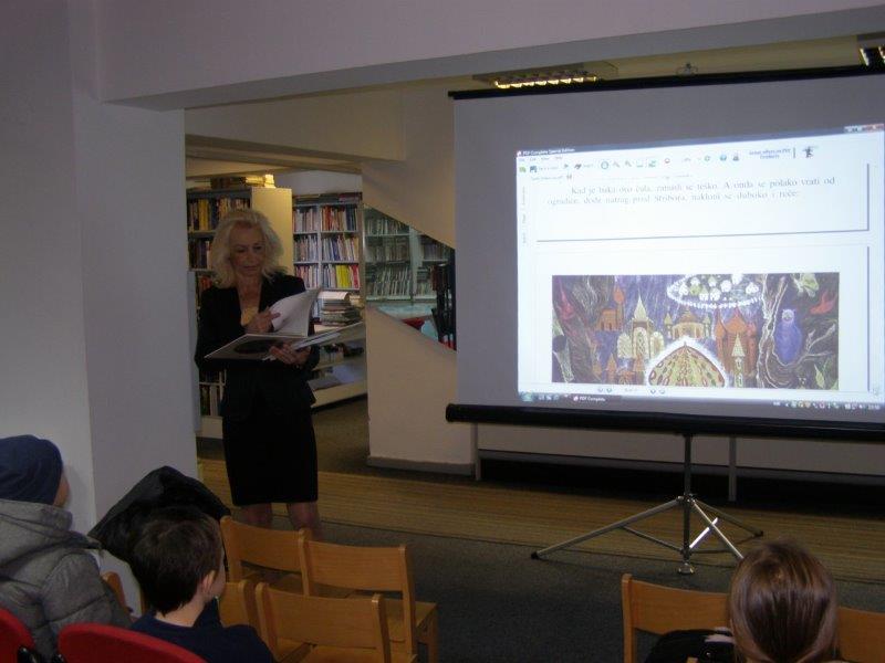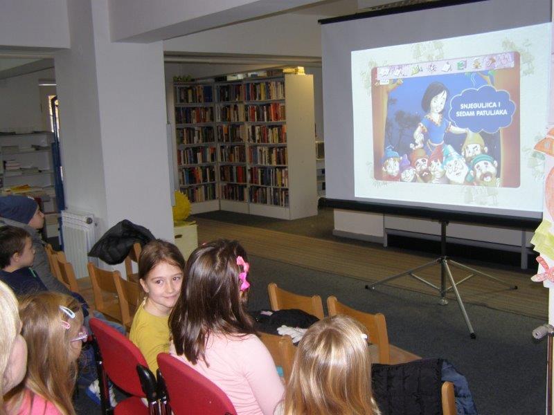 Učenicima je prezentiran književni lik Ivane Brlić Mažuranić, a  priču „Šuma Striborova“, knjižničarka je prepričala uz pomoć elektroničke slikovnice posuđene od učiteljice Vere Menčik. Knjižničarka je učenicima predočila elektroničku slikovnicu-bajku braće Grimm: “Snjeguljica“.