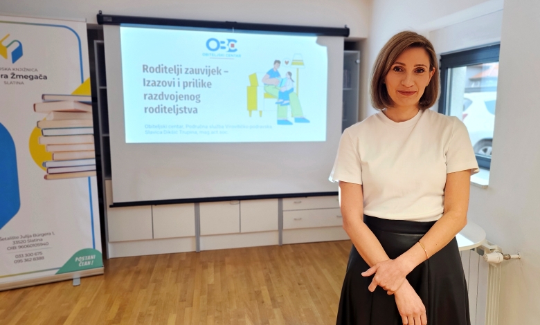 U Gradskoj knjižnici Viktora Žmegača Slatina u utorak, 31. ožujka, održano je stručno predavanje pod nazivom „Roditelji zauvijek: Izazovi i prilike razdvojenog roditeljstva“, u organizaciji Obiteljskog centra, Područne službe Virovitičko-podravske, u sklopu programa „Obiteljski zuum“ odnosno „Obiteljski zadnji utorak u mjesecu“.