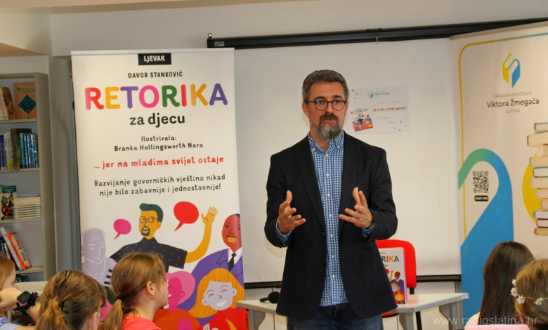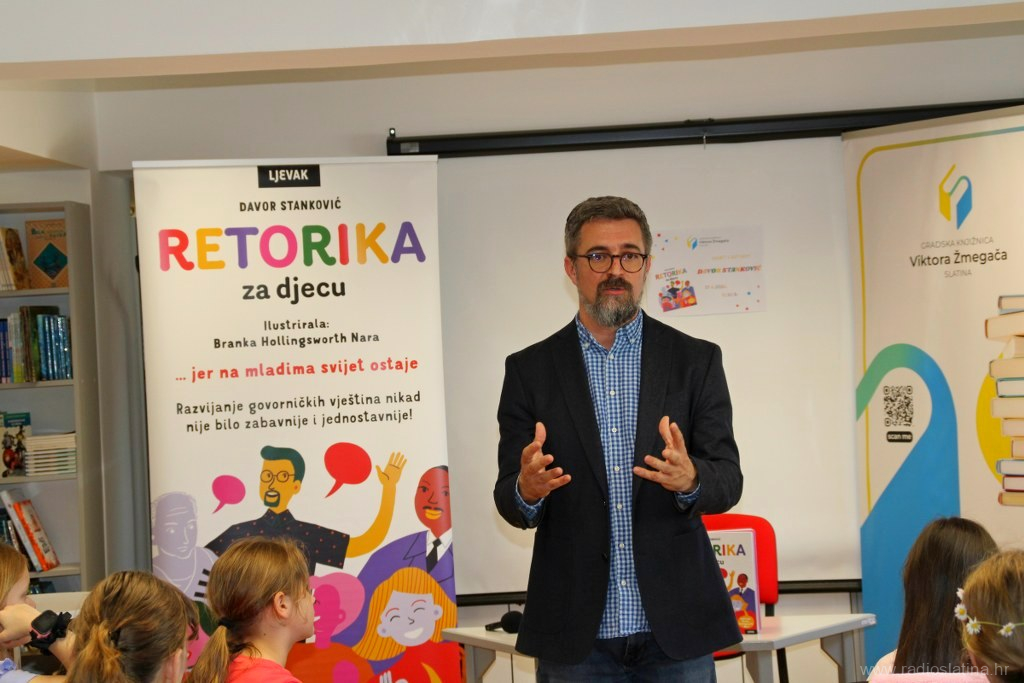 U Gradskoj knjižnici i čitaonici Viktora Žmegača u Slatini danas (petak) je održan inspirativan susret učenika i autora. Gost knjižnice bio je Davor Stanković, fonetičar i stručnjak za javni nastup, koji je učenicima predstavio svoju vježbenicu „Retorika za djecu“.