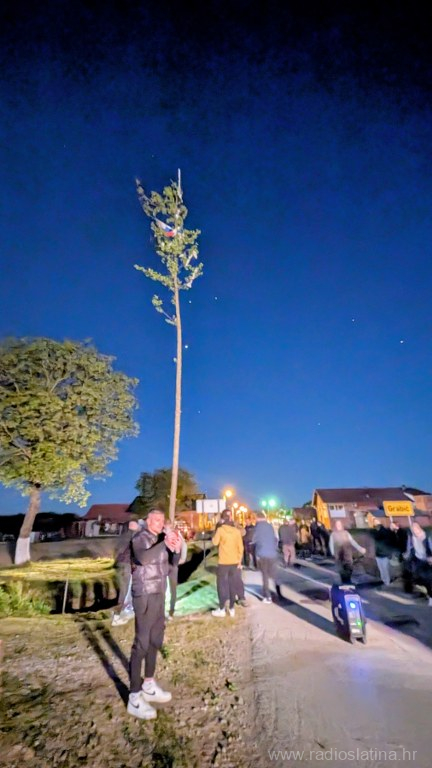U pravilu se u selu podižu tri majpana – na početku i na kraju mjesta te ispred kuće gdje se očekuju svatovi. Upravo taj treći nosi posebnu simboliku jer najavljuje novu svadbenu godinu. Ove godine domaćin je bio Marijan Hađina, jer će se njegova kći Martina udati za Ivana Muretića, pa je cijeli običaj imao i vrlo konkretnu “adresu”. Ipak, ovaj put majpan nije završio ispred kuće, nego kod table na ulazu u selo, gdje piše Grabić. Sam čin podizanja ima i svoj “radni” dio. Rupu za majpan kopa jedan – zet ili mladić iz sela – bez pomoći, dok ostali uskaču tek kod podizanja i učvršćivanja. Nije to jednostavan posao, ali dio je pravila koja se poštuju bez puno rasprave. Majpan se, kao i svake godine, kitio raznim ukrasima. Od klasičnih detalja do ponešto maštovitijih dodataka, koji su uvijek dio lokalnog humora i opuštene atmosfere. Bilo je i ove godine svega, iako je noć učinila svoje pa je dio toga ostao više za pretpostaviti nego jasno vidjeti.