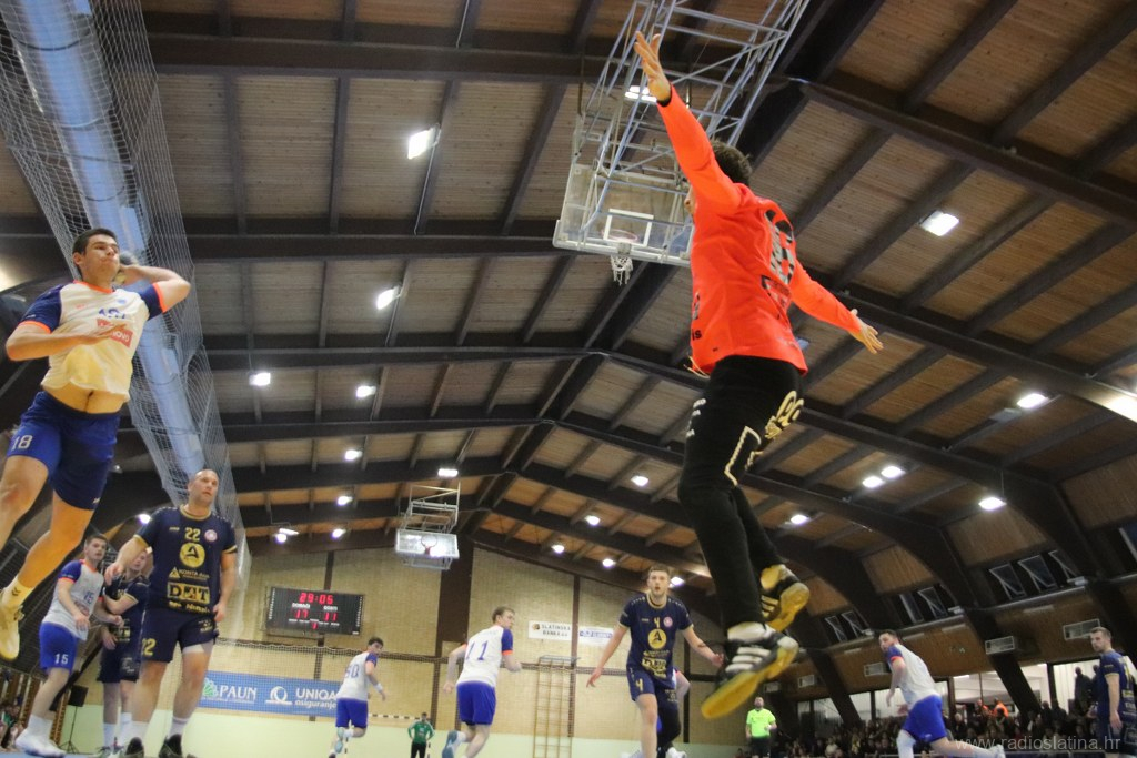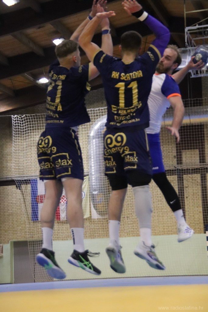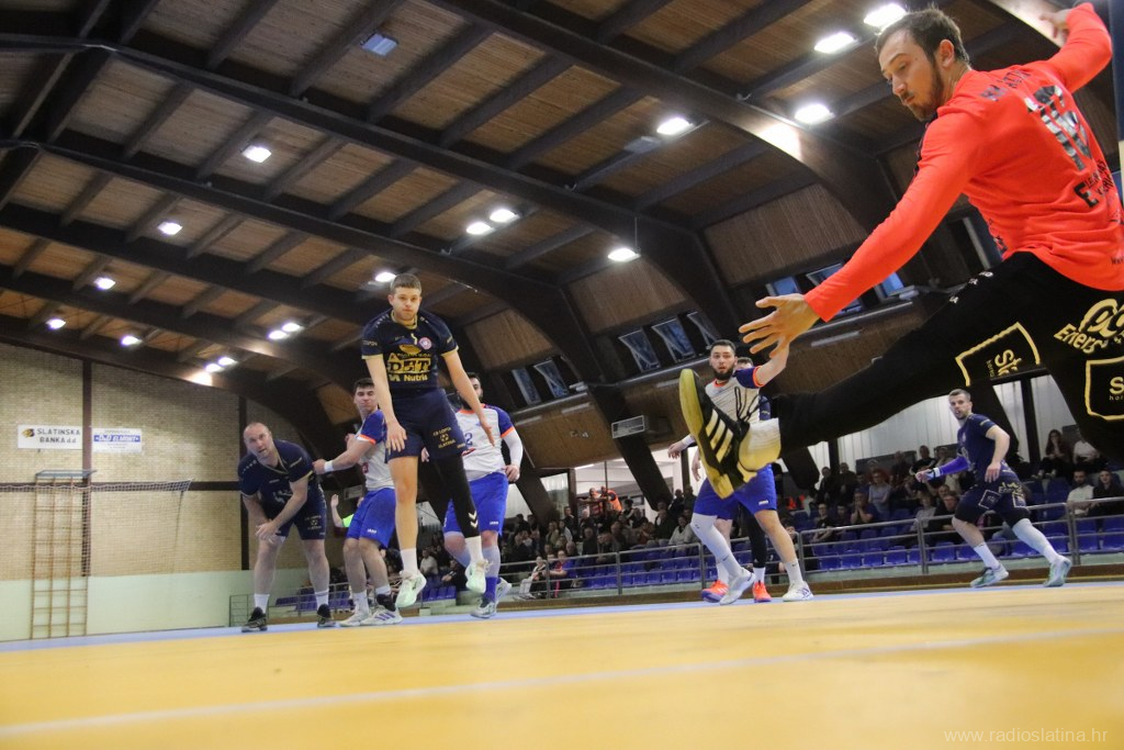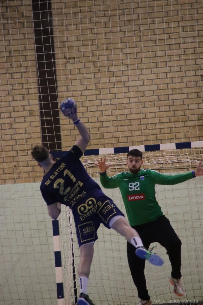 Derbi susret iz slatinske perspektive ponudio je dvoboj pete i treće momčadi prvenstva, a domaćini su na kraju došli do uvjerljive i zaslužene pobjede. Iako je veći dio prvog poluvremena protekao u izjednačenoj igri, sve do sredine tog dijela, Slatina je u završnici prvih 30 minuta ubacila u višu brzinu. Serijom pogodaka nakon 20. minute domaći su se odvojili, a do odlaska na odmor prednost je narasla na šest pogodaka razlike (18:12).