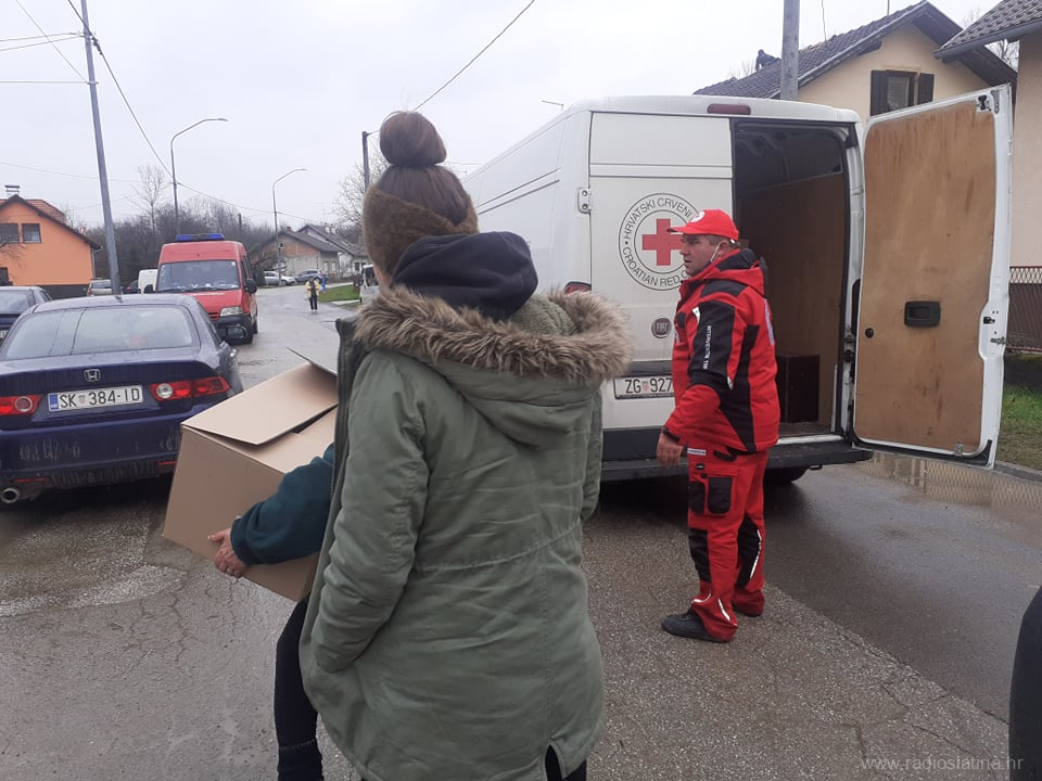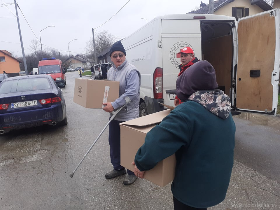 Na poziv iz središnjice Hrvatskog Crvenog križa 29. prosinca slatinski je Crveni križ na teren poslao Josipa Šimića, Zlatka Borovca, Zlatka Horvata i Tihomira Horvatina koji su se nakon podjele paketa i pružanja pomoći stradalima, doma vratili 2. siječnja da bi ih zamijenilo sedam novih volontera.
