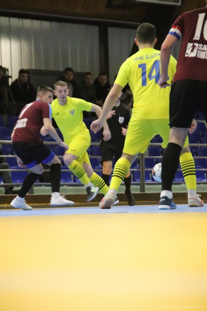 SLATINA Sportska dvorana Srednje škole Marka Marulića. Gledatelja: 50. Suci: Siniša Ličinić (Orahovica) i Josip Jukić (Osijek). Strijelci: 0:1 Aleksić (13), 0:2 Aleksić (14), 1:2 Tomić (22), 2:2 Tomić (33).