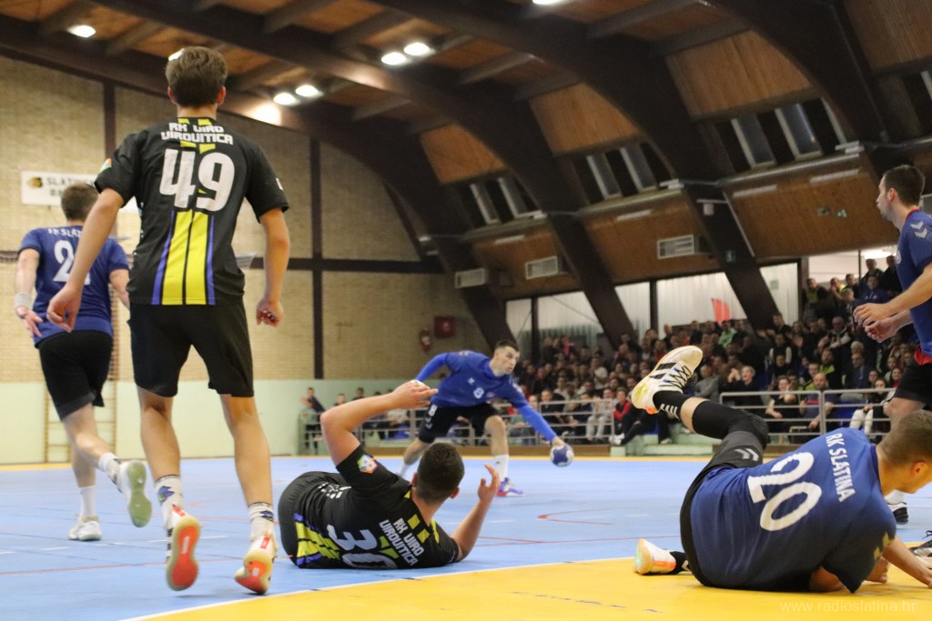 Slatina je utakmica otvorila pateći se s realizacijom no zato je brzi centar bio savršen, dovoljan da u nekoliko sekundi poništi minimalnu prednost gostiju. Od 10.minute kreće slatinski uragan. Sjajnom igrom nevjerojatna serija tada potpuno nezaustavljive Slatine zaustavila se na 9:1 (13:6). U toj 22.minuti svi su mislili da je utakmica riješena, ali ne i gosti. Ta reinkarnacija družine Matka Crljenića započela je iz obrane u kojoj je briljirao posljednji čovjek – vratar Štimac. Do odmora Slatina više nije mogla do gola, a s druge strane napadačkom serijom 5:0 Virovitica gotovo u potpunosti hvata priključak i odlazi na odmor s itekako dokučivih minus dva (13:11) i još vrjednijim saznanjem da imaju igru i recept za domaćina.