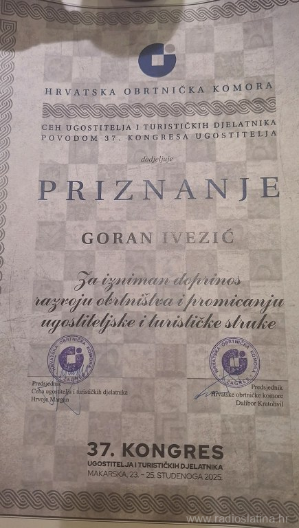 Slatinčanin Goran Ivezić dobitnik Priznanja za izniman doprinos razvoju obrtništva i promicanju ugostiteljske i turističke struke, Ceha ugostitelja i turističkih djelatnika Hrvatske obrtničke komore