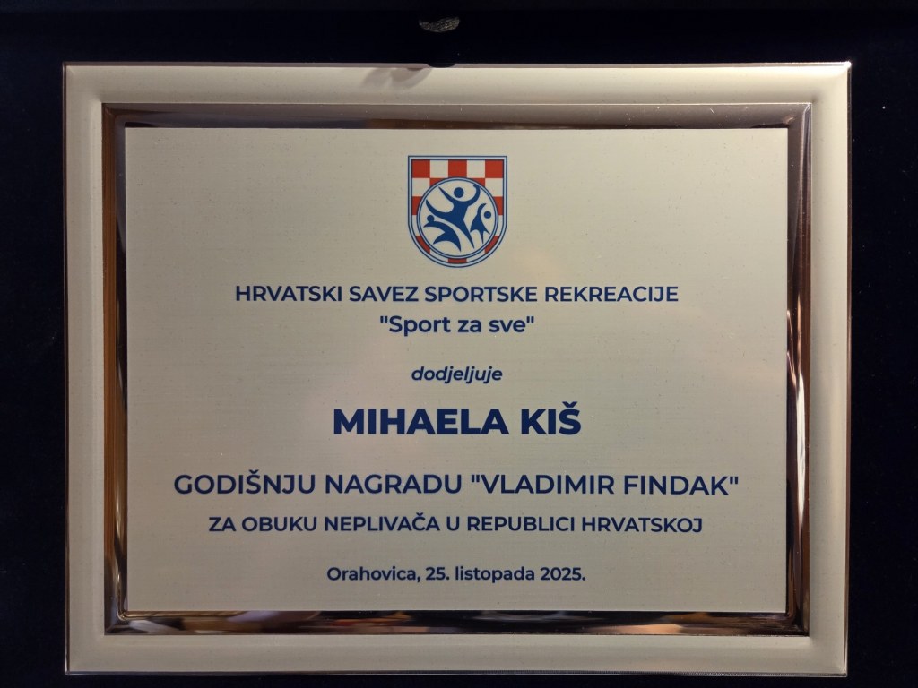 Zahvaljujući svom dugogodišnjem stručnom i humanom radu, predanosti promociji plivanja i uključivanju djece s teškoćama u razvoju u sportske aktivnosti, Mihaela Kiš zasluženo je postala dobitnica prestižne Godišnje nagrade za obuku neplivača „Vladimir Findak“ za 2025. godinu.