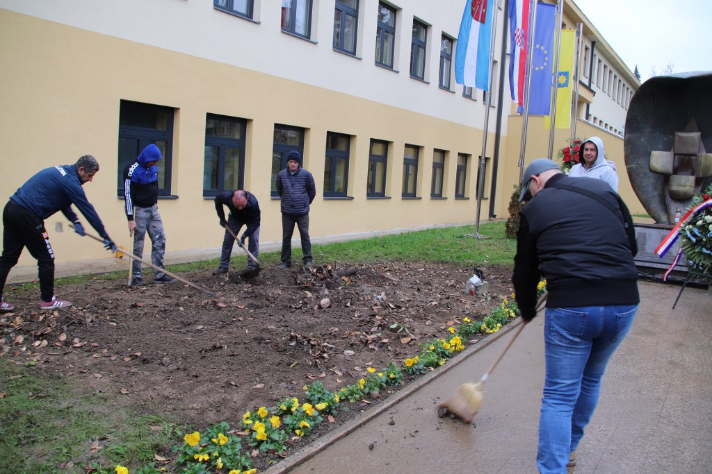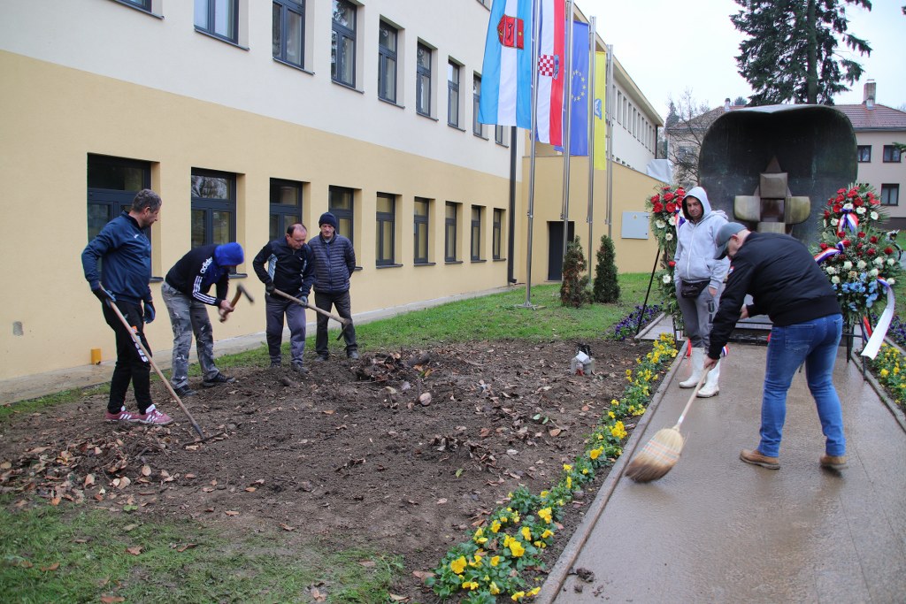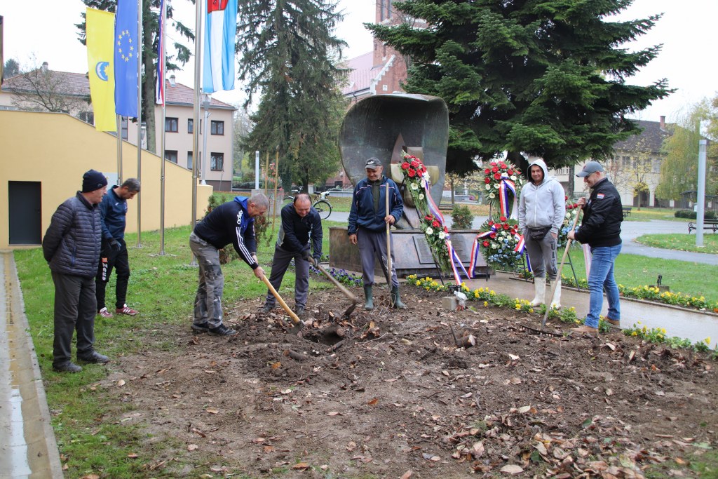 Unatoč kišnom danu slatinska HVIDR-a danas je organizirala još jednu radnu akciju kojom je zaokružena priča uređenja centralnog spomenika poginulim hrvatskim braniteljima u Slatini.