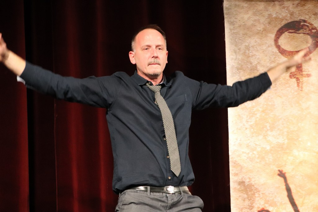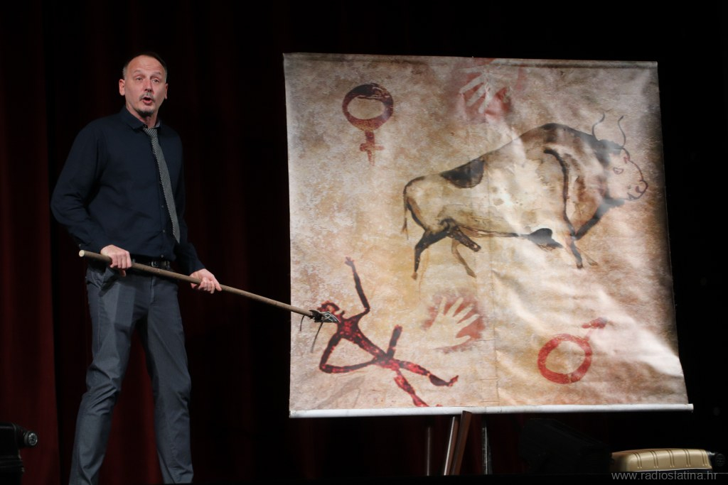 U sklopu ovogodišnjih Slatinskih kazališnih večeri koje organizira Pučko otvoreno učilište Slatina, večeras (četvrtak) je u velikoj dvorani učilišta izvedena hit-predstava „Pračovjek“ u izvedbi i režiji Peđe Gvozdića, glumca Umjetničke organizacije Zakon Teatar.