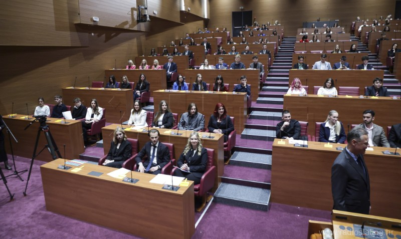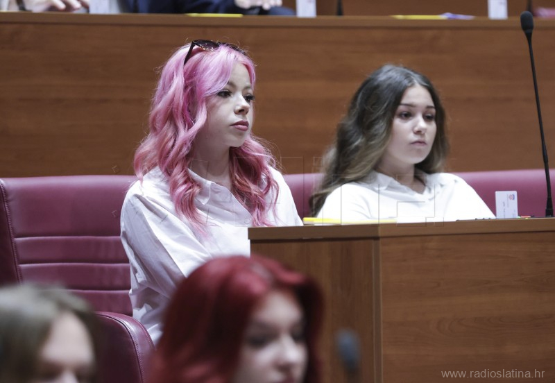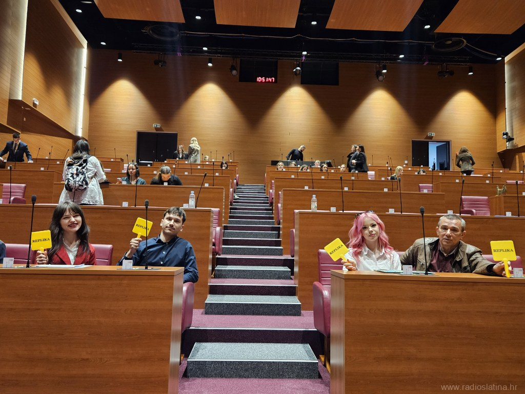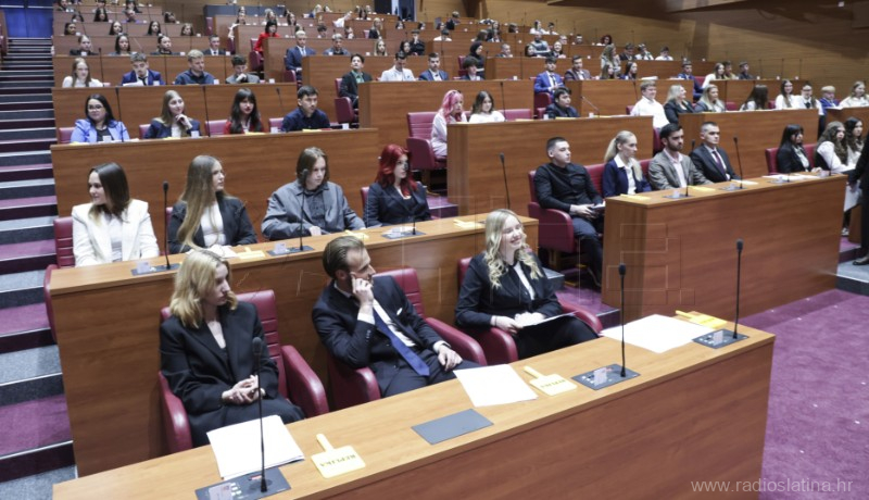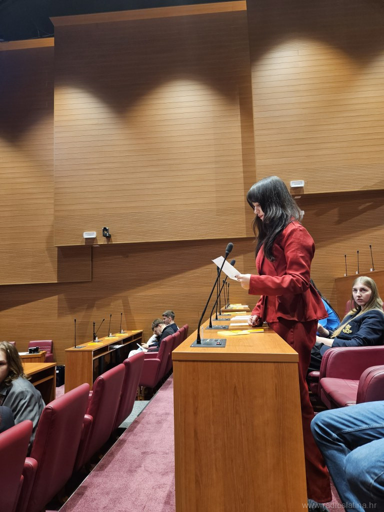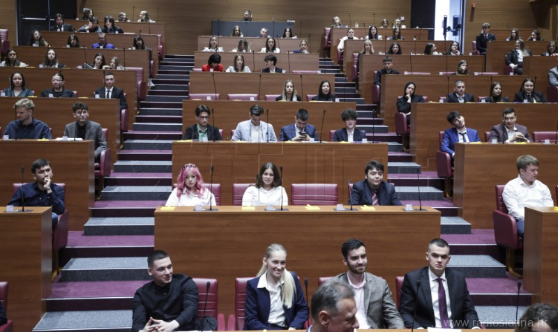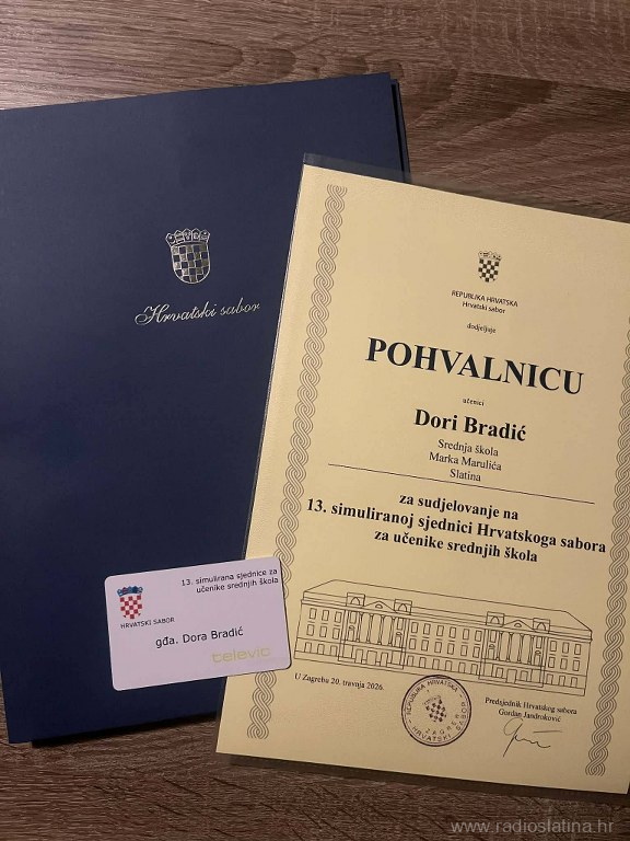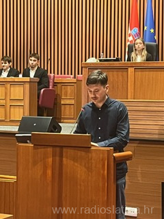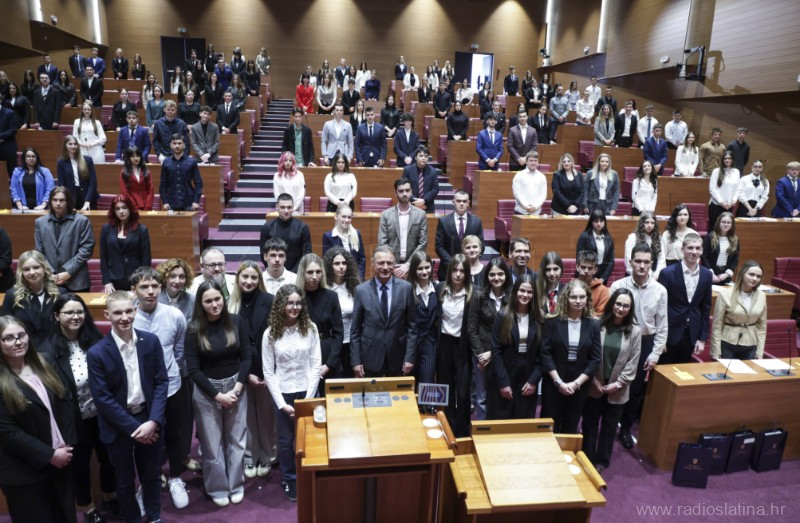 U Hrvatskom saboru jučer (20. travnja 2026.) je održana 13. simulirana sjednica Hrvatskoga sabora za učenike srednjih škola. Na sjednici je sudjelovao 160 učenika-zastupnika iz 57 škole iz cijele Hrvatske, a među njima, jedini iz Virovitičko-podravske županije, sudjelovali su učenici Srednje škole Marka Marulića Slatina.