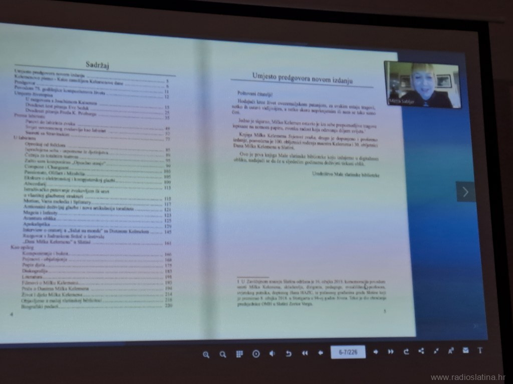 Osim što je spomenuta knjiga predstavljena u digitalnom obliku, posebnost ove večeri bilo je i to što je doktorica znanosti Mirna Sabljar u radu okruglog stola sudjelovala video pozivom, odnosno javljanjem iz Cavtata.