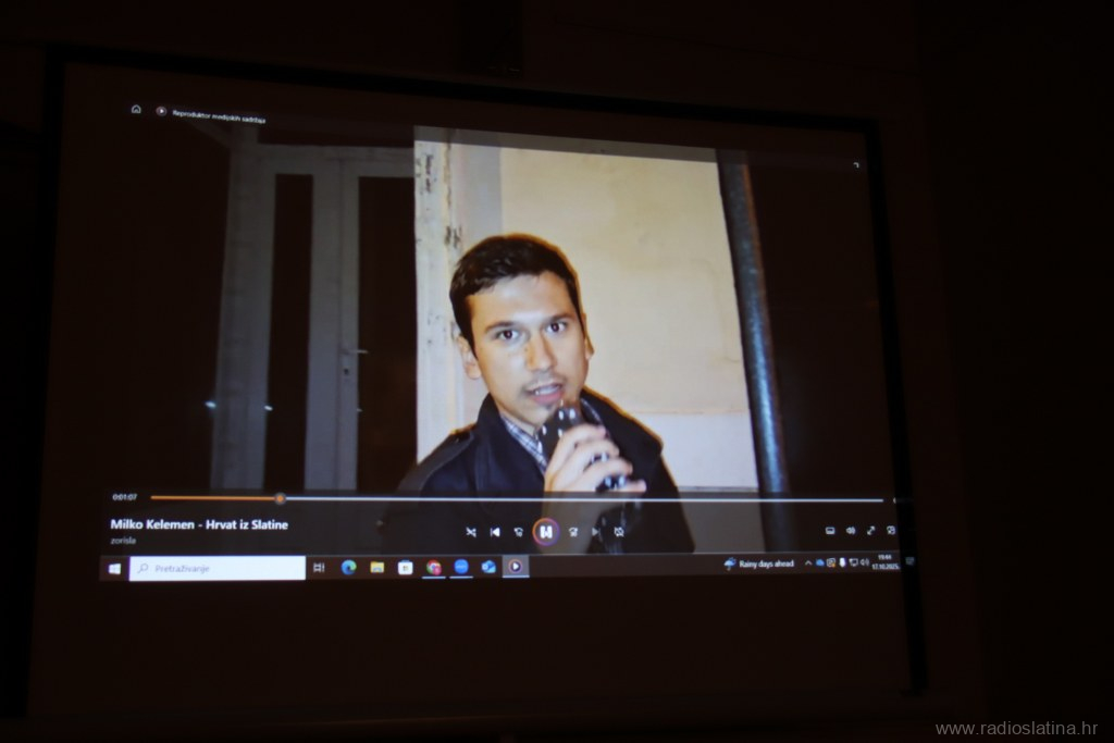 Umjesto Kelemenove biografije posjetitelji su imali priliku pogledati film koji su snimili gimnazijalci Srednje škole Marka Marulića Slatina imena „Milko Kelemen – Hrvat iz Slatine“, nagrađen na smotri u sklopu manifestacije Dani baštine i turizma za mlade 2025. čija je tema bila umjetnošću ovjekovječiti svoj zavičaj.