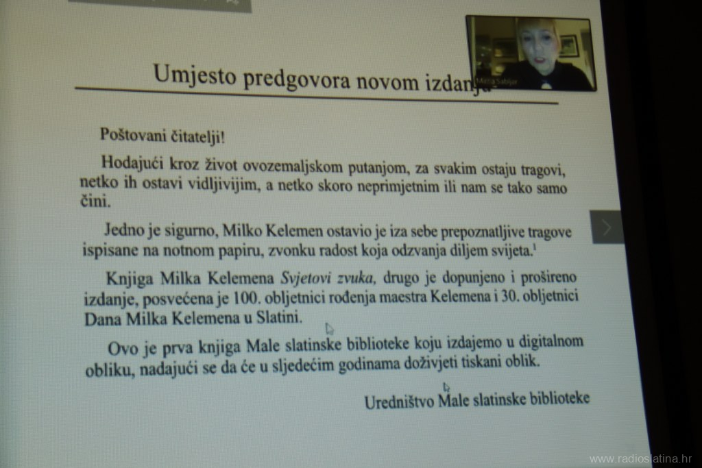 U sklopu Međunarodnog glazbenog festivala Dani Milka Kelemena koji se po 31. put održava u Slatini Ogranak Matice hrvatske u Slatini organizirao je Okrugli stol: Predstavljanje II. dopunjenog i proširenog izdanja knjige Milko Kelemen „Svjetovi zvuka“.