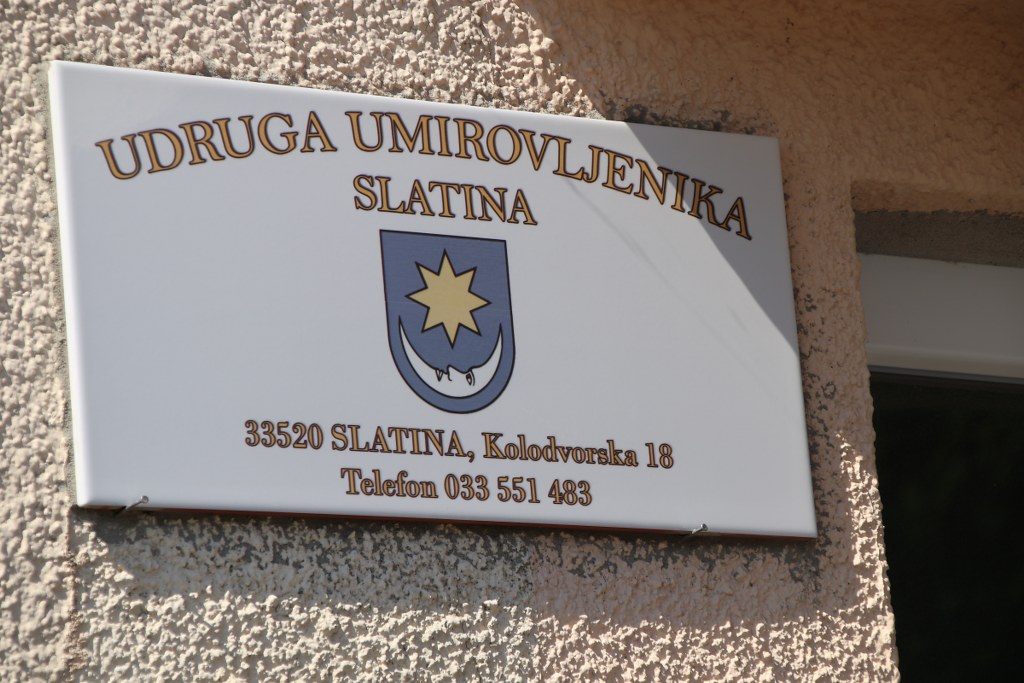 Udruga umirovljenika Slatina koja broji gotovo 250 članova i bori se za sve umirovljenike sa slatinskog područja kako bi im olakšala i poboljšala kvalitetu života, ne samo kroz nabavu ogrjevnog drveta, namirnica i drugih potrepština, već i kroz organizaciju raznih edukacija i aktivnosti te ih potakli na veću brigu o vlastitom zdravlju. Isto tako želi se što veći broj umirovljenika uključiti u razne aktivnosti kako se ne bi osjećali zapostavljeno i kako bi znali da nisu sami.