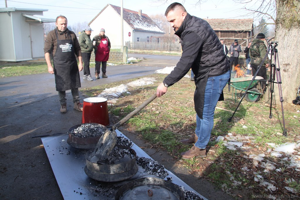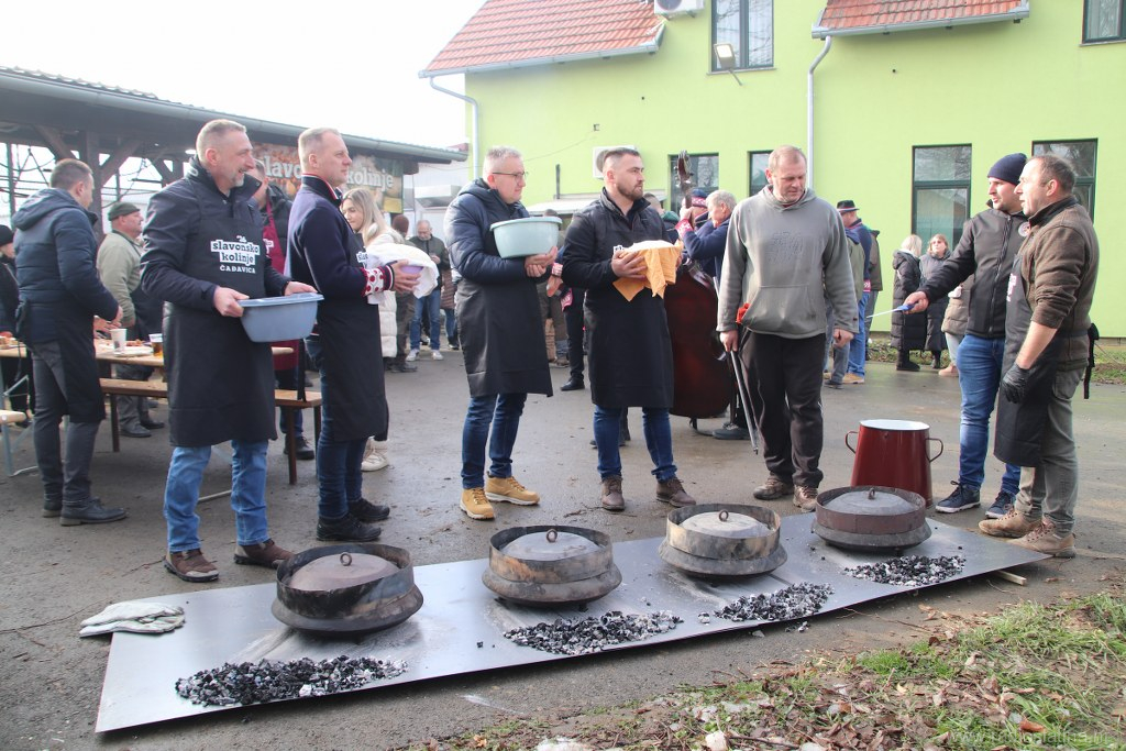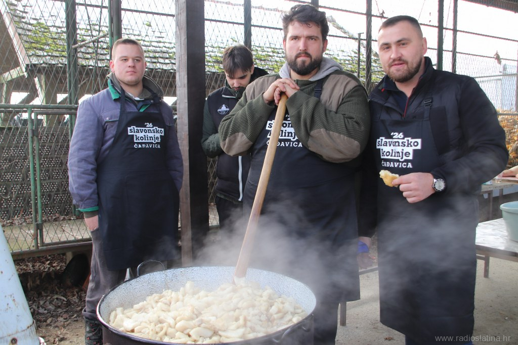 Nakon što je uzorak mesa poslan na analizu slavonsko kolinje nastavljeno je na prostoru lovačkog doma Lovačke udruge „Sokol“ Čađavica gdje su mesari započeli s pripremama za daljnju obradu mesa.